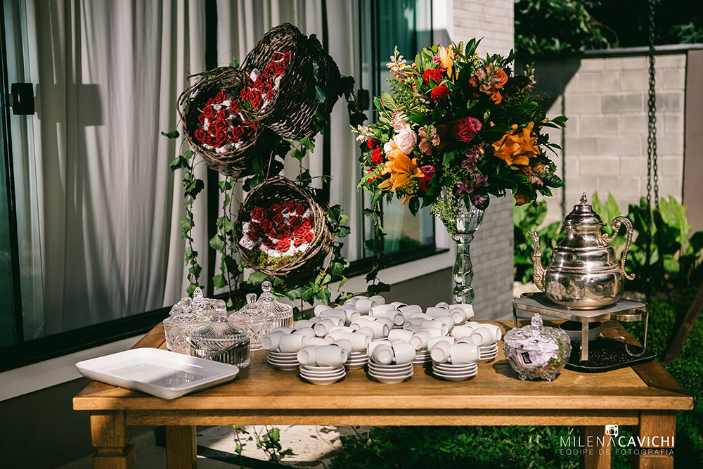 Apesar do tempo curto, já tínhamos pensado em tudo o que queríamos no casamento. Quando marcamos o primeiro encontro com a cerimonialista, ela ficou de boca aberta! Faltavam uns 6 meses para a data, mas eu já sabia como tudo seria e o tempo foi gasto para pensar apenas nos detalhes.