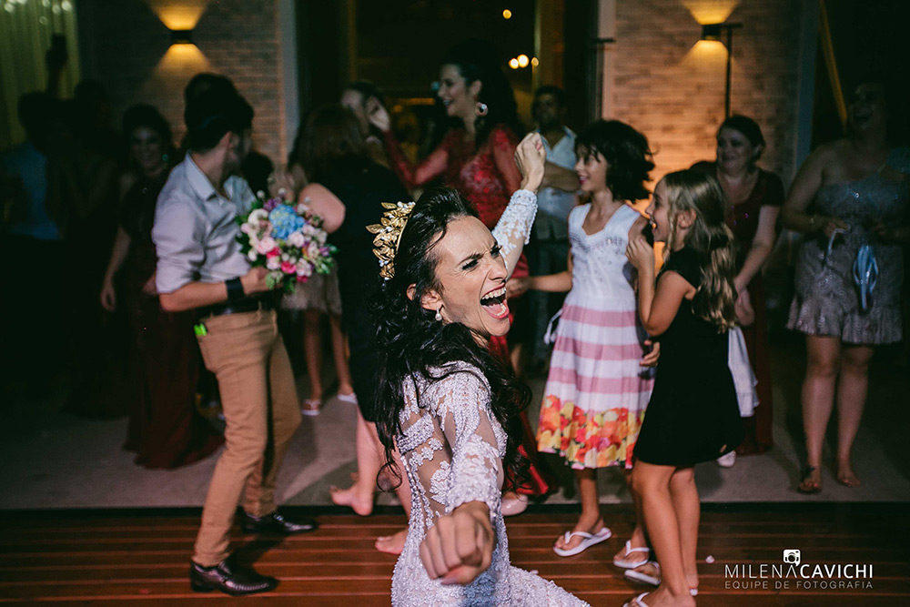 Nossa escolha foi super acertada porque ela fez a cerimônia voz e violão. Depois, enquanto o buffet era servido, ela fez um modelo tipo “barzinho”, cantando umas músicas mais calmas para, em seguida, passar por MPB, Amy Winehouse e até Tears for Fears… Mais tarde, em parceria com o DJ, fez um show cantando muita balada, tipo David Guetta, Lady Gaga e tal… A galera dançou muito!
