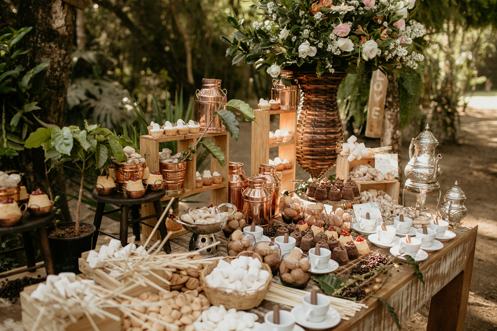 Ambos publicitários, sempre soubemos que queríamos um casamento com conceito visual pautado em natureza e muito aconchego, para que todos se sentissem à vontade. A única regra é que transmitisse nossa essência, quem somos de verdade!