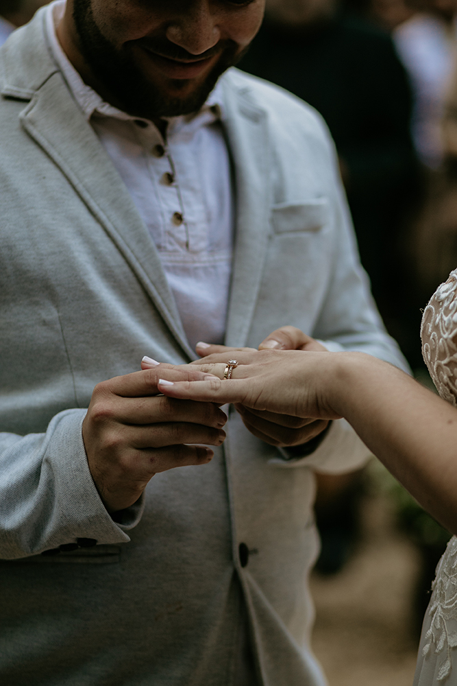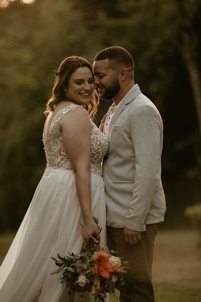 “Queríamos um casamento com conceito visual pautado em natureza e muito aconchego, para que todos se sentissem à vontade. A única regra é que transmitisse nossa essência, quem somos de verdade!”.