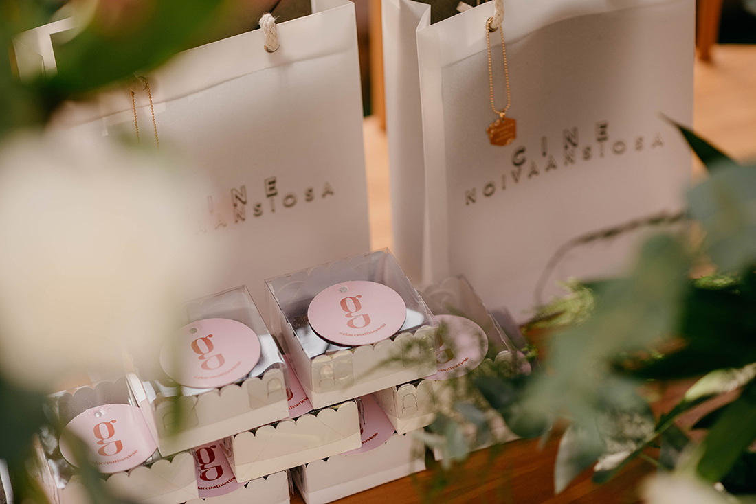E por falar em mimos, os casais ainda levaram para casa os bem casados da Cléo Herrera, os docinhos da Glace Patisserie e medalhinhas personalizadas da Via Trends.