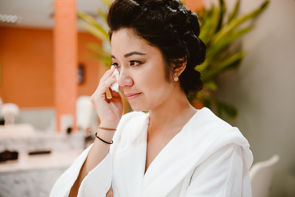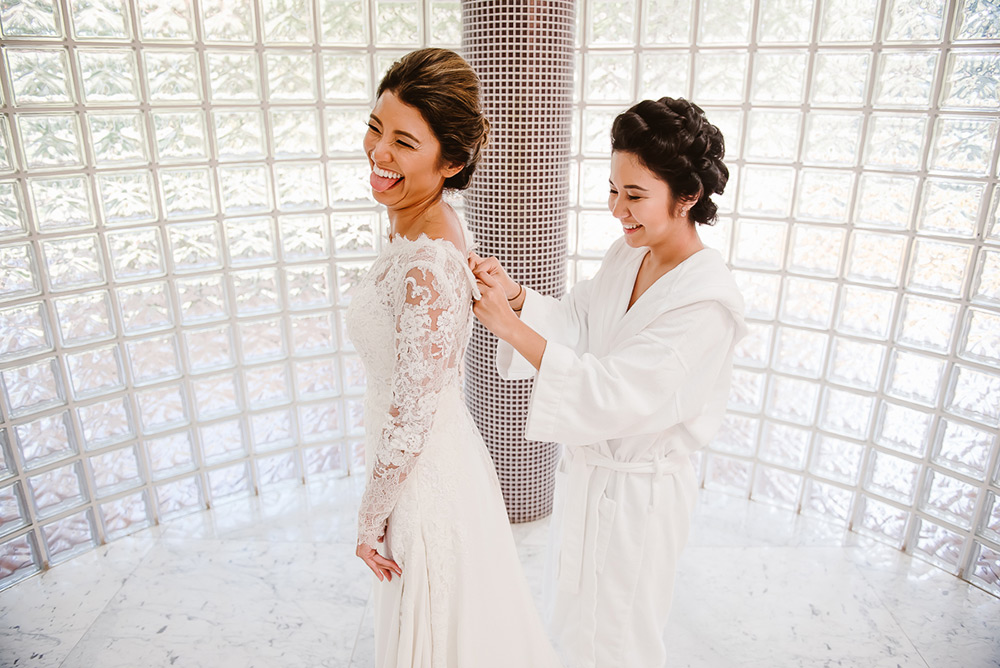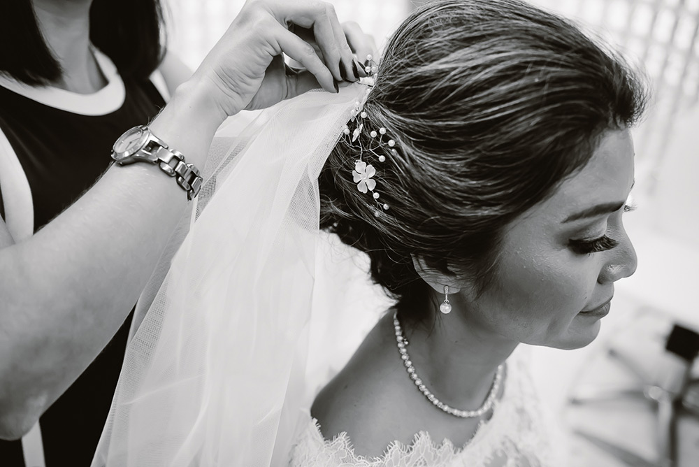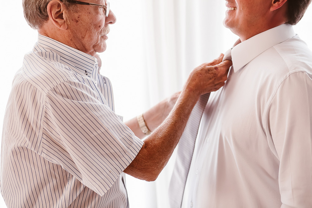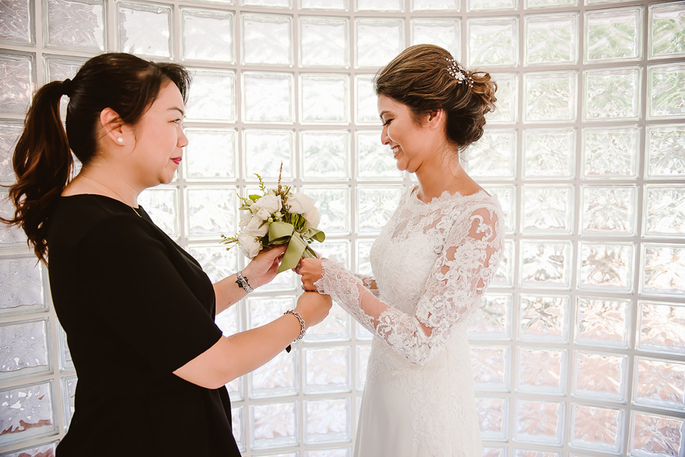 Elas colocaram um relicário com a foto da mãe da Cris no buquê, e ela só soube quando recebeu as flores, momentos antes de ficar pronta.