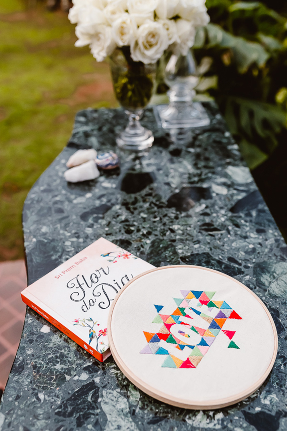 Infelizmente a mãe da Cris já não está mais entre nós e a escolha de rosas brancas foi em sua homenagem, assim como o colar que ela usou.