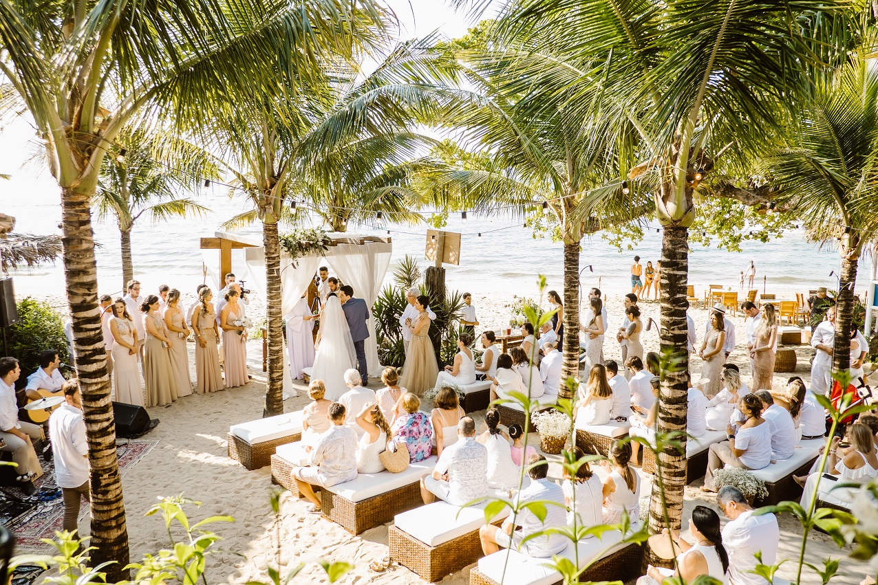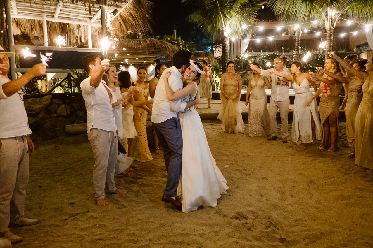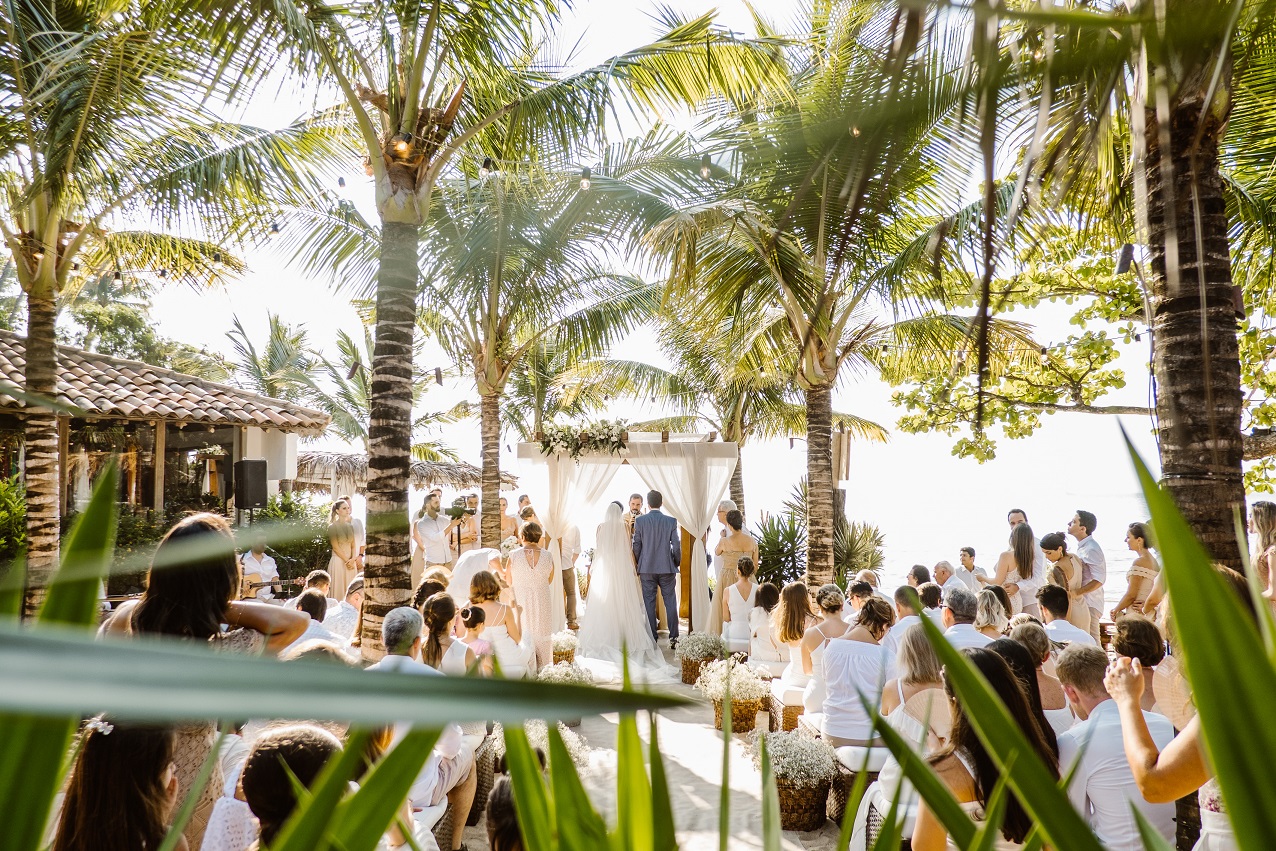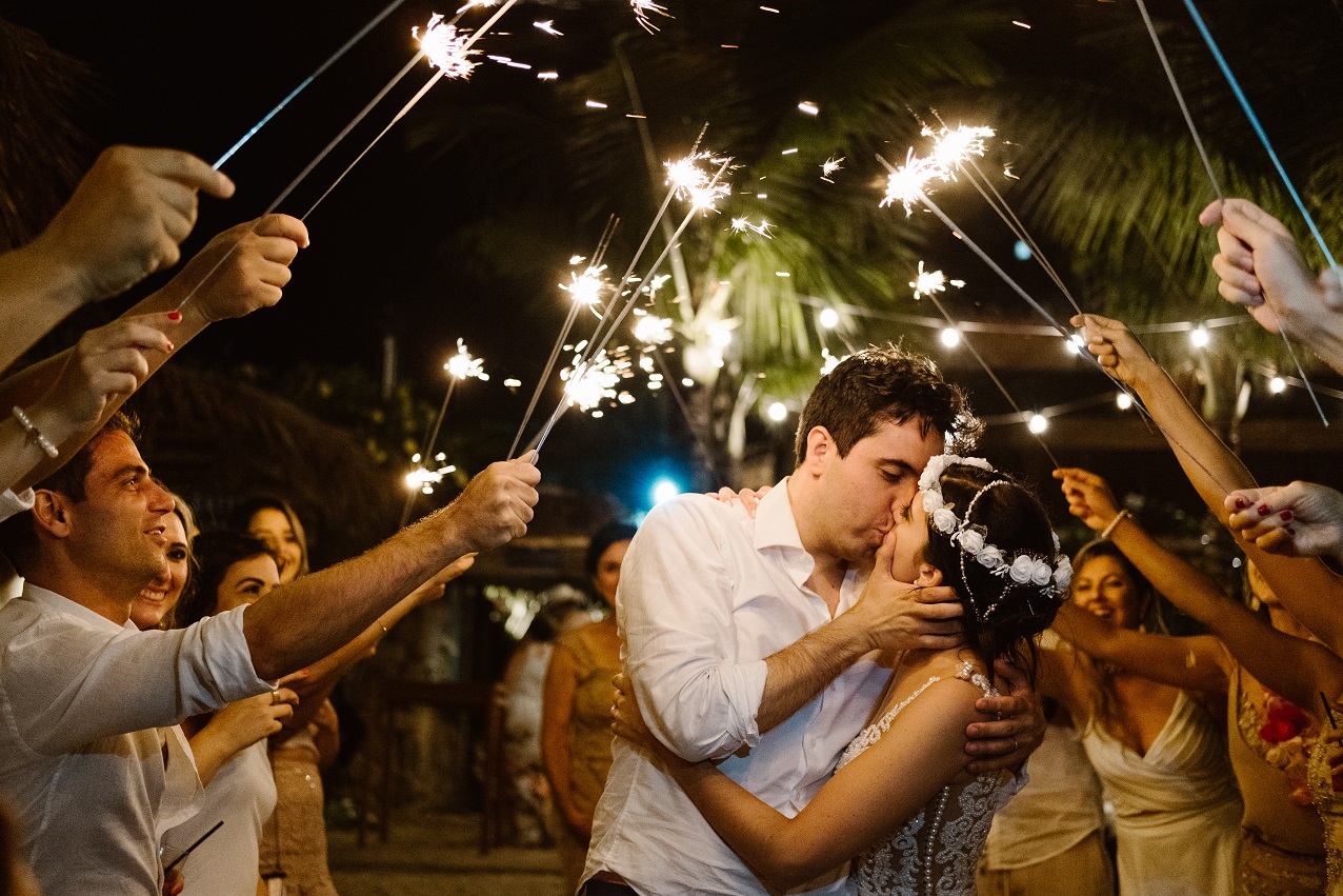 A grande maioria dos nossos convidados nunca tinha participado de um casamento na praia e todos amaram, dizendo que foi o melhor casamento e que super valeu a pena terem ido! Gostaram principalmente das boas energias e vibrações que só a natureza pode proporcionar, além da descontração que um ambiente desse favorece.