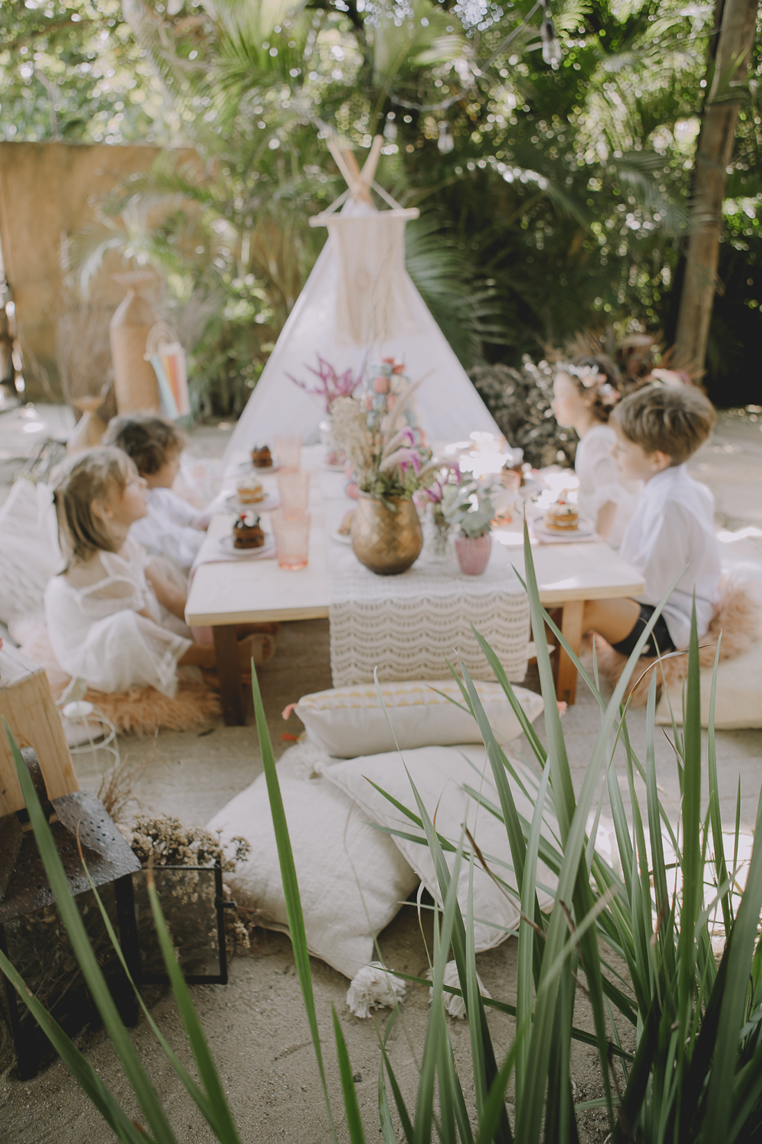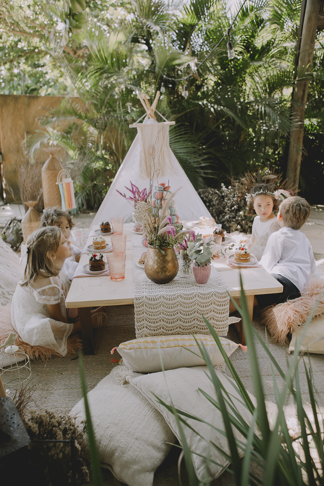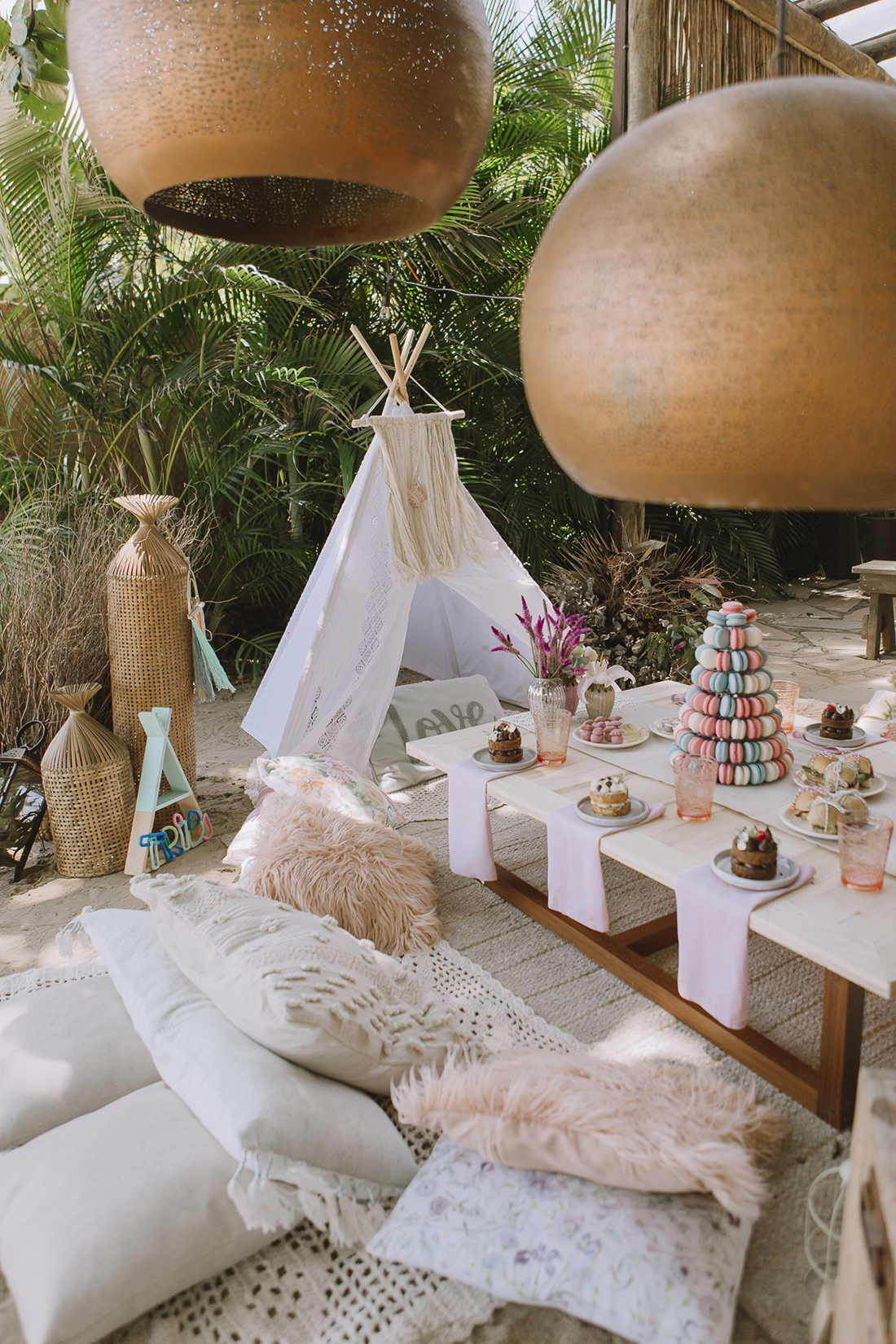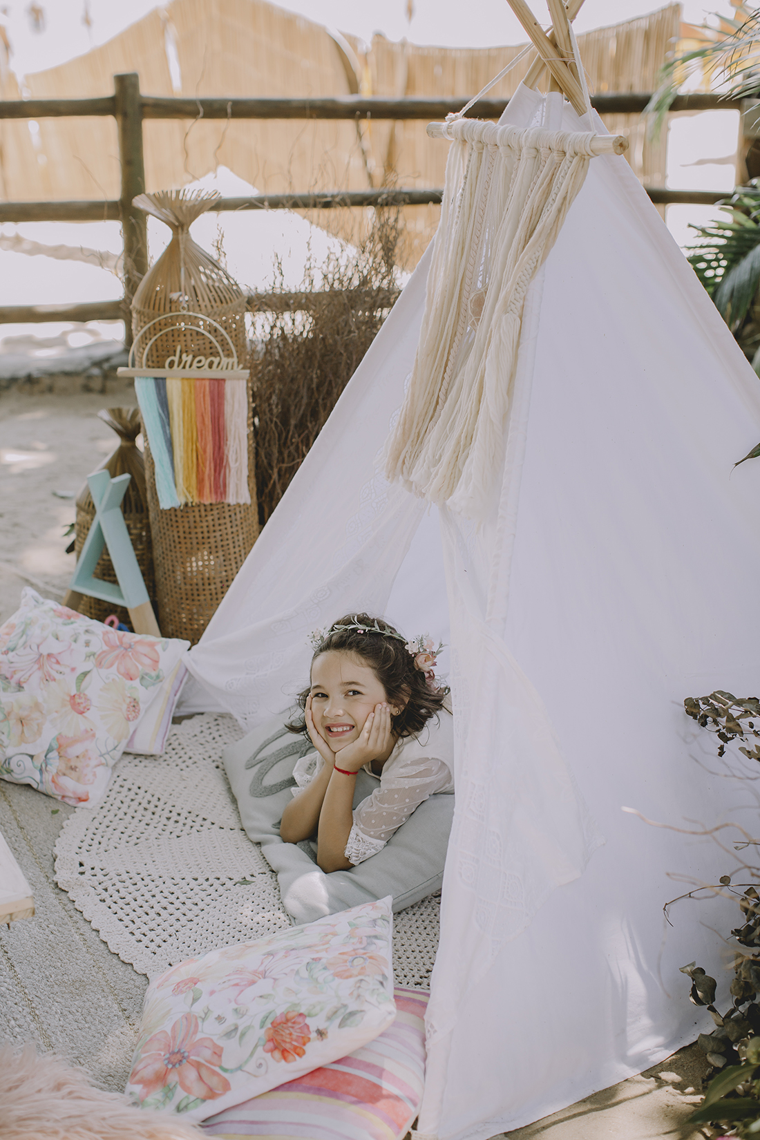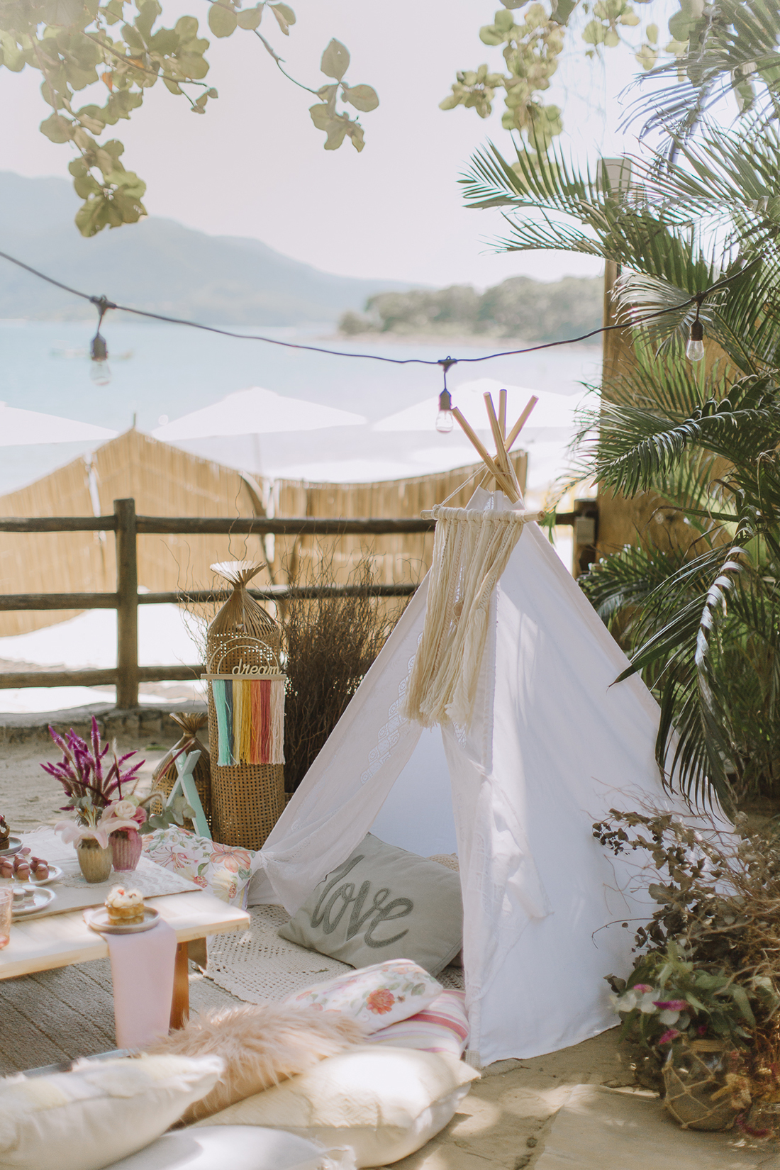 Só para ilustrar, as tradicionais cabaninhas, macramês, cestos, almofadas e outros detalhes não poderiam ser mais lúdicos e encantadores!