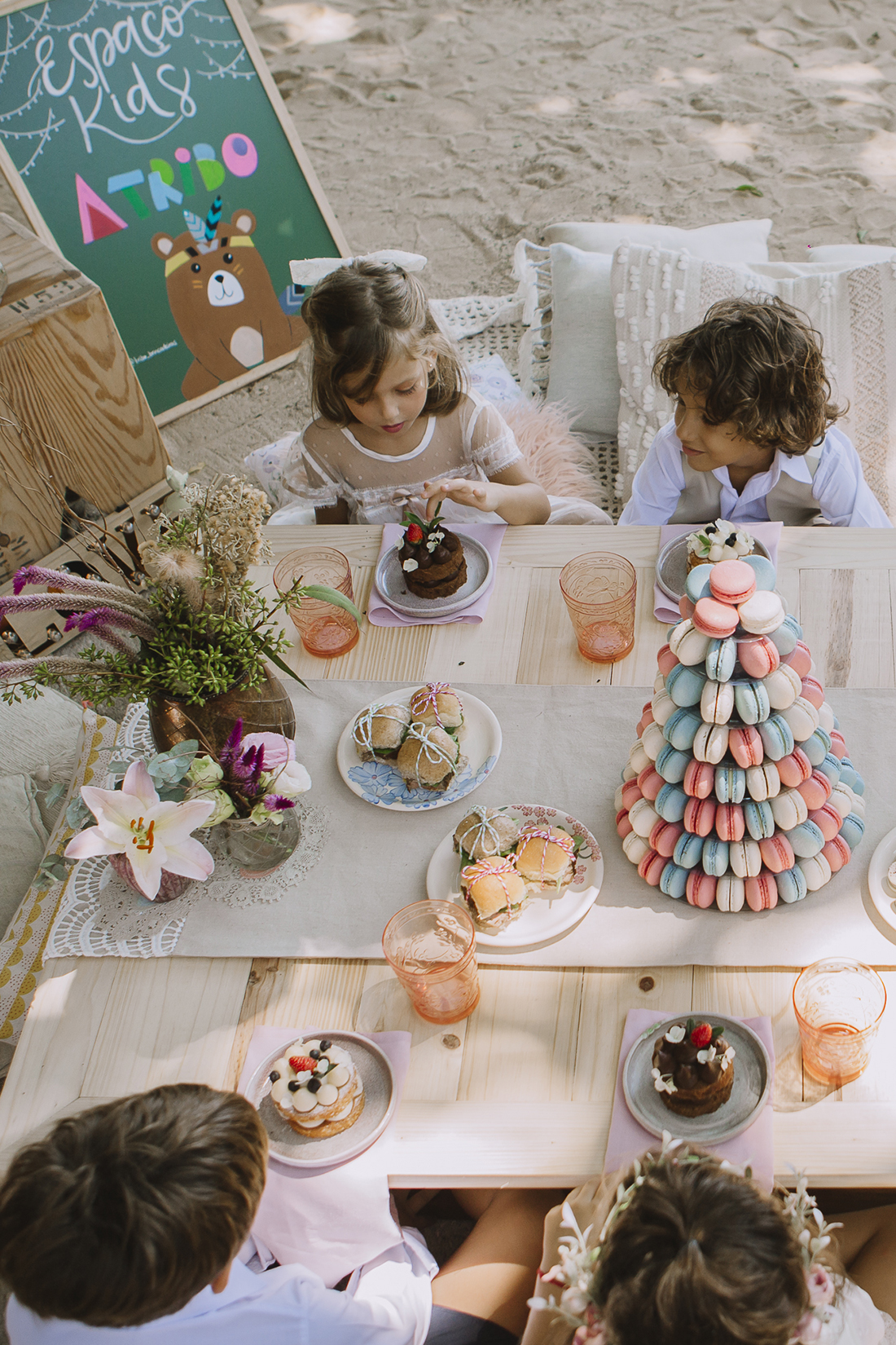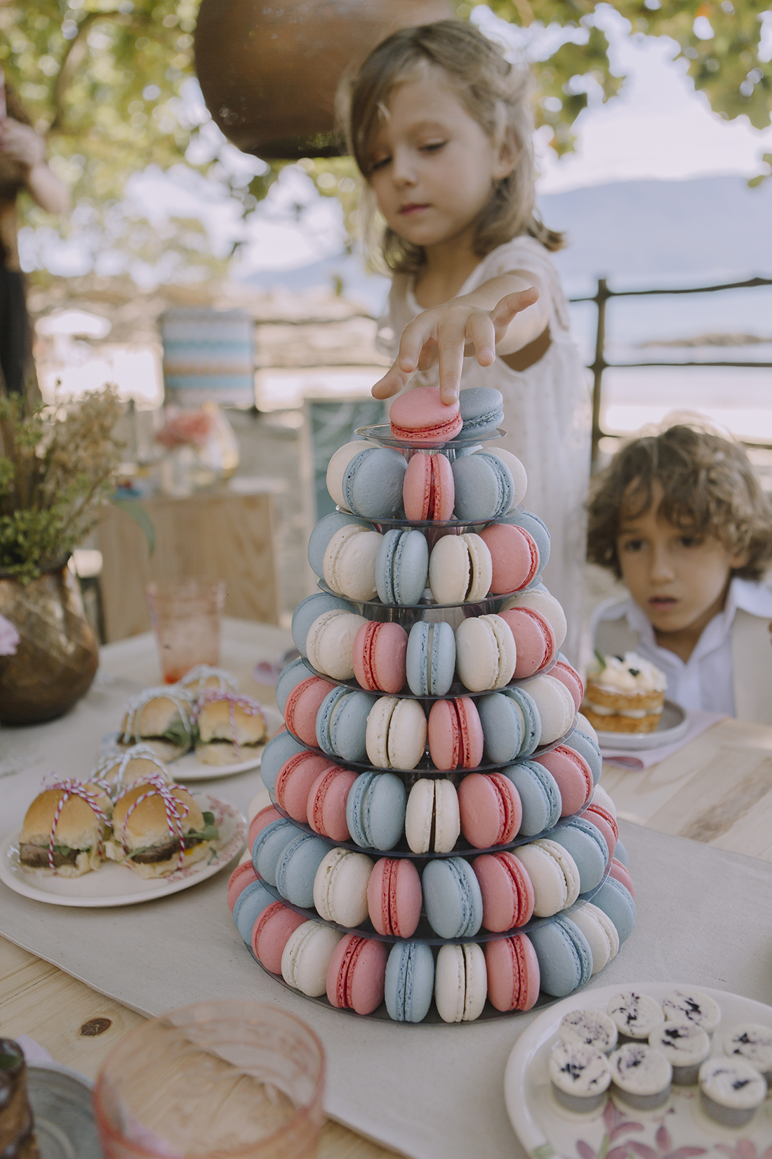 Os doces e macarons são da Macarons Glace. Além de lindos, são realmente muuuito gostosos. Nossas daminhas e pajens que o digam!