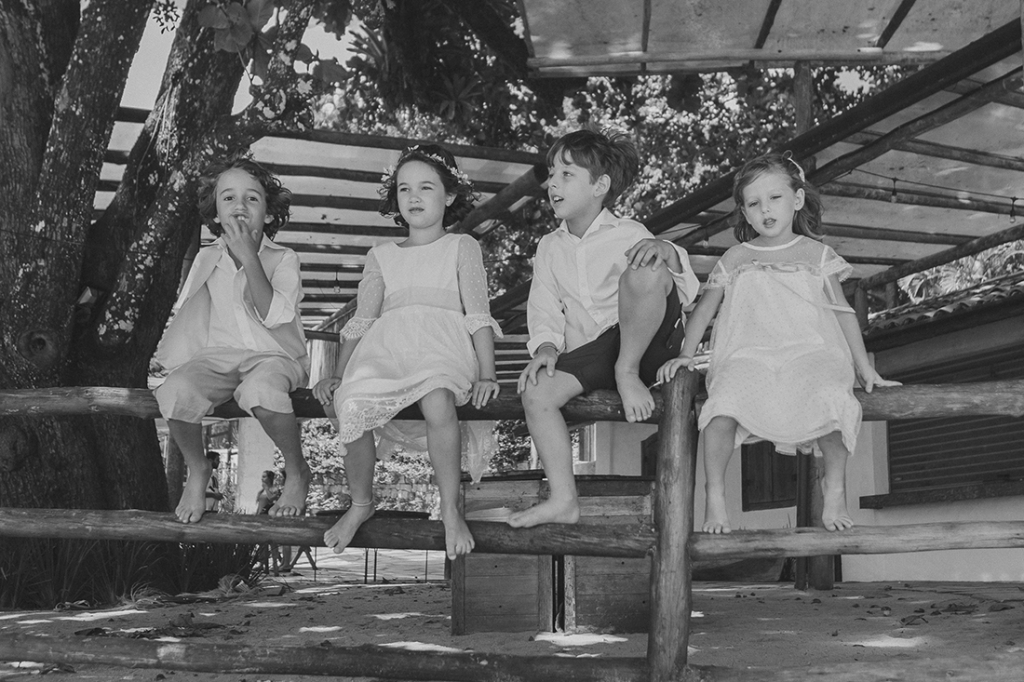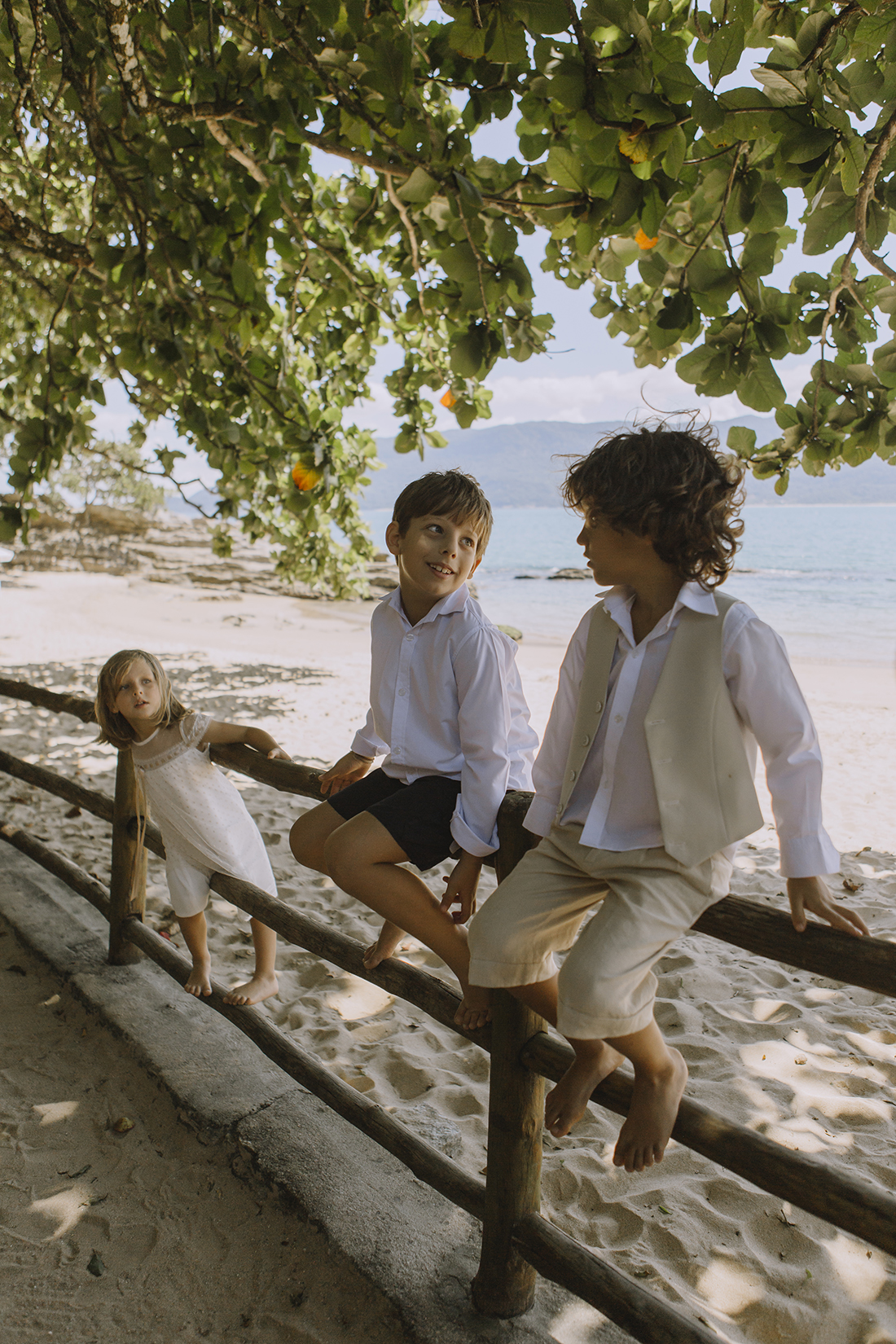 As daminhas e pajens, todos residentes da Ilha, até que curtiram os acessórios e roupinhas. De fat, todos ficaram lindos!