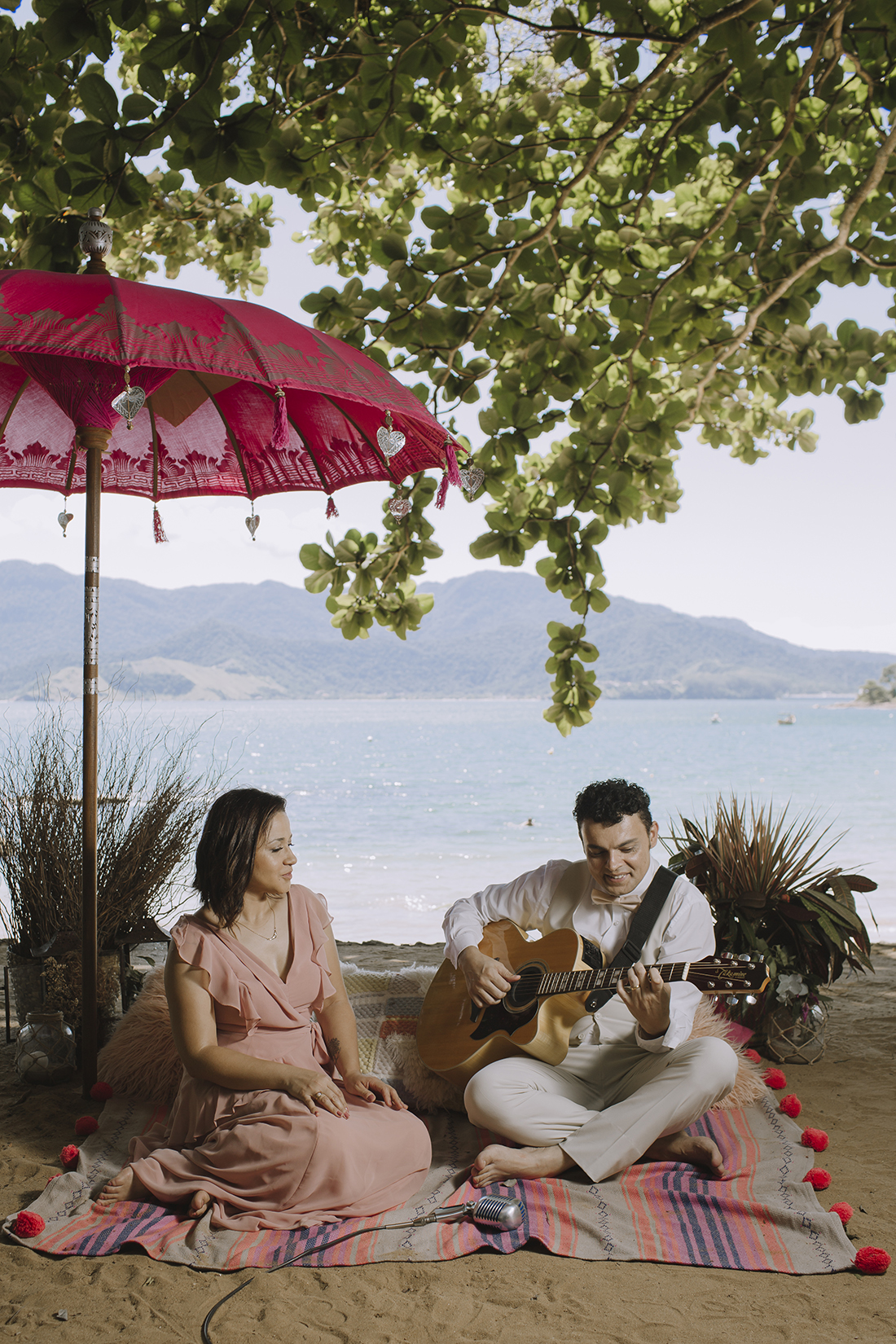 O cantinho das crianças e o ambiente criado para os músicos ficaram simplesmente irresistíveis, ainda mais com o auxílio de outras empresas. Todos foram fundamentais para o resultado final: flores por Rosangela Rossi, roupa de mesa do Mercador e Tie Produções com a iluminação.