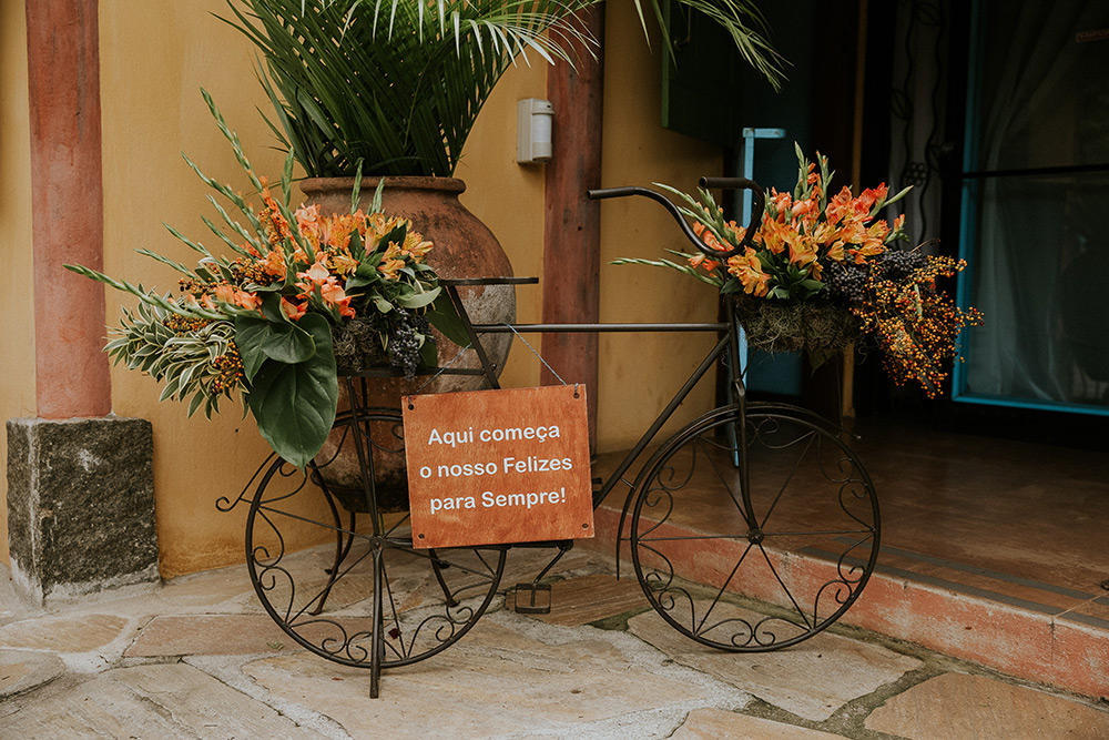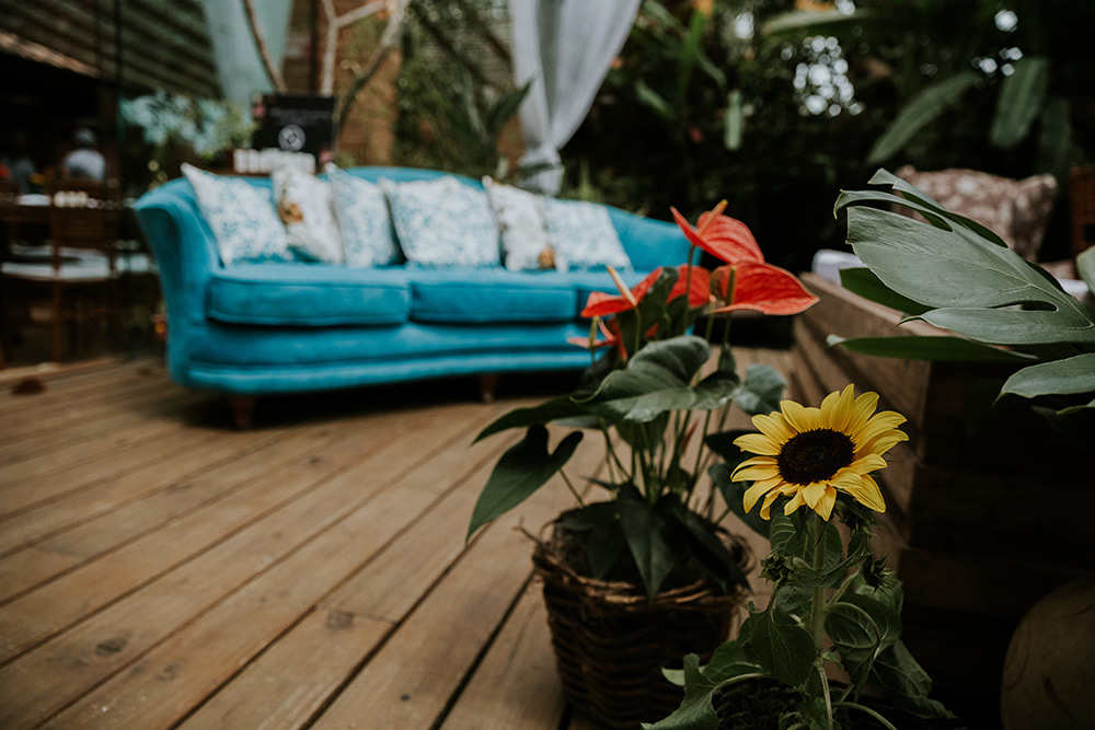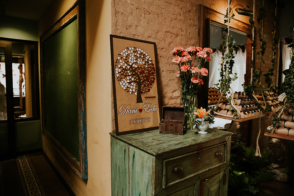 Eu achava que seria fácil encontrar o local ideal, mas não. Visitamos vários espaços e achávamos todos bonitos, inspiradores. Mas faltava aquele sentimento do coração bater mais forte, sabe? E isso aconteceu no momento que entramos na Casa D’Alva e vimos a árvore.