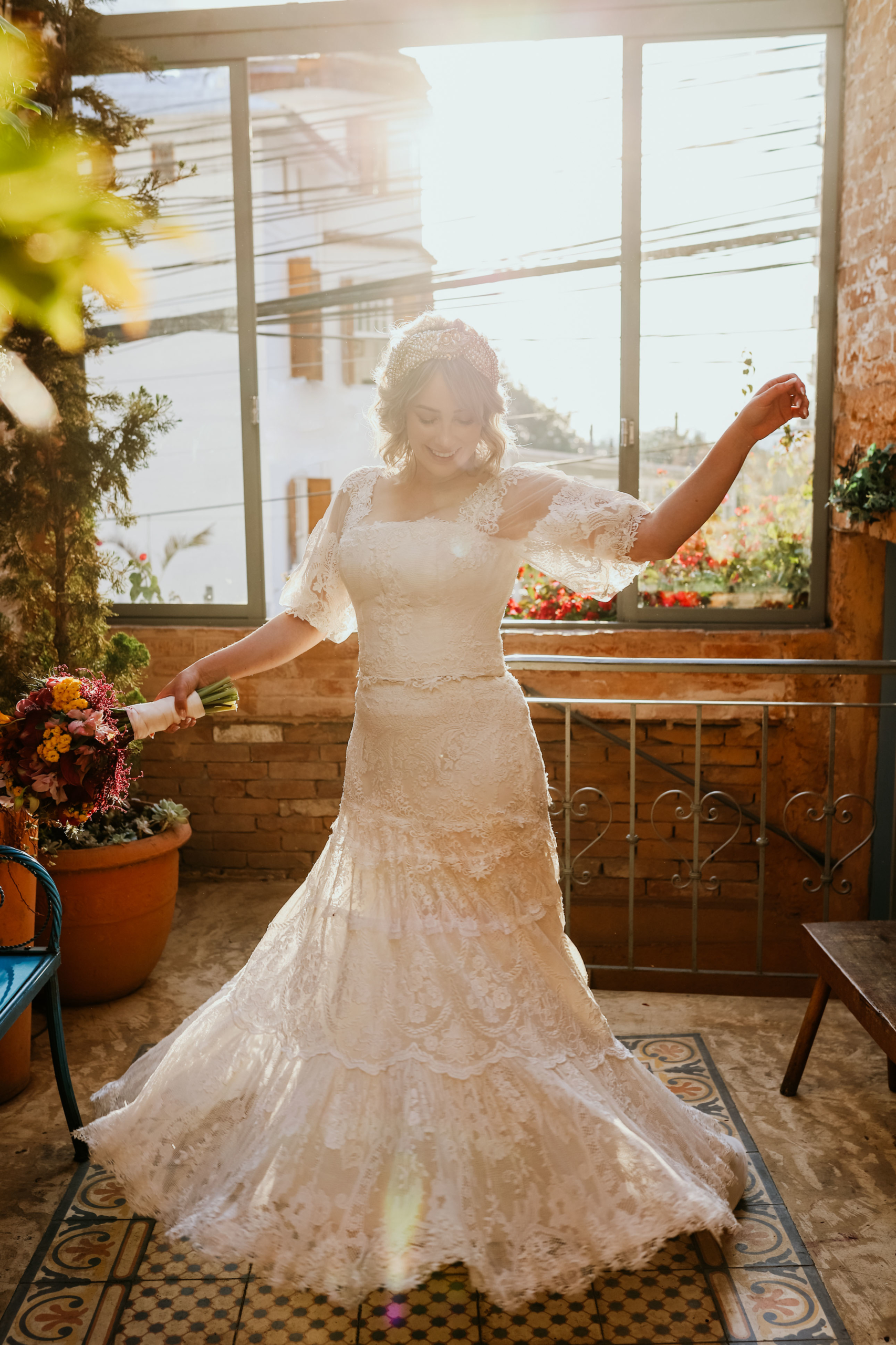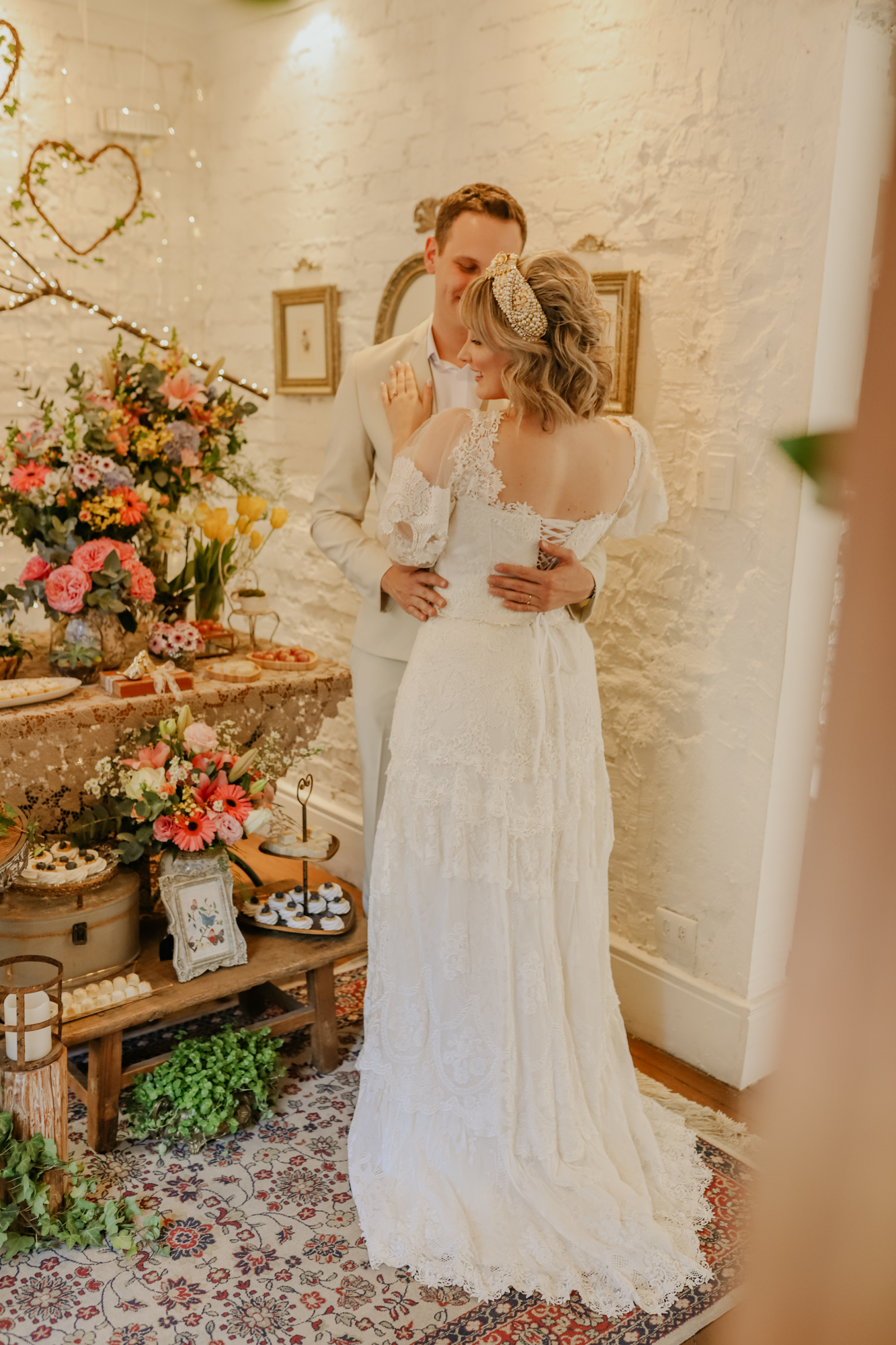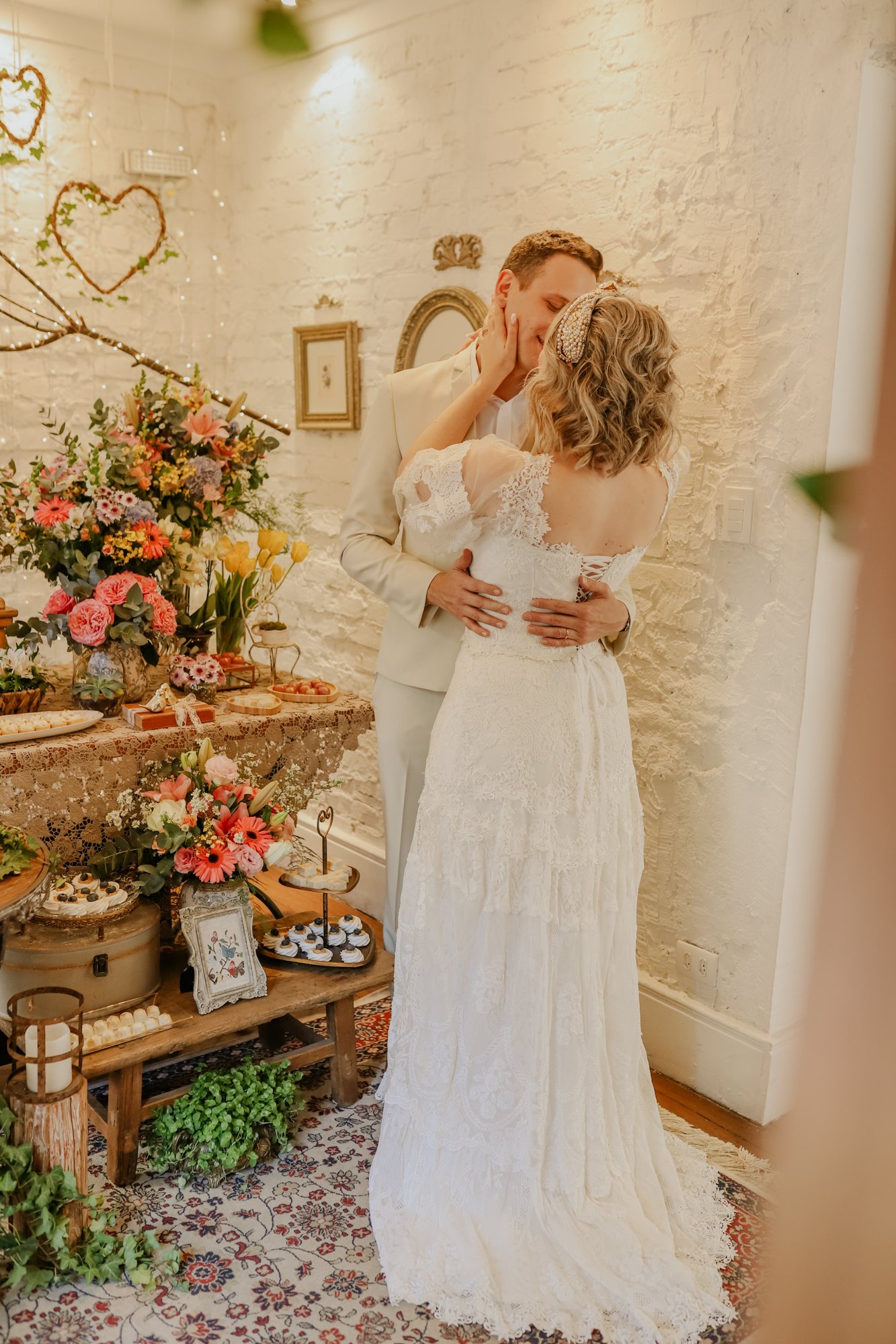 Das fotos espalhadas pela Casinha Quintal até o vestido, tão delicado quanto a própria noiva, tudo conspirou para momentos de emoção e romance.