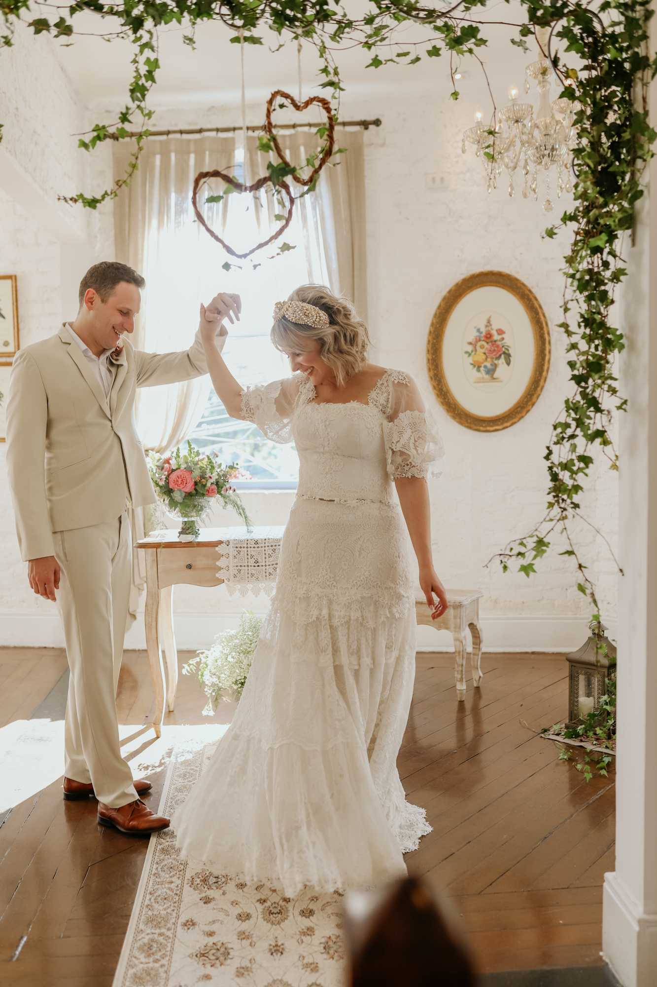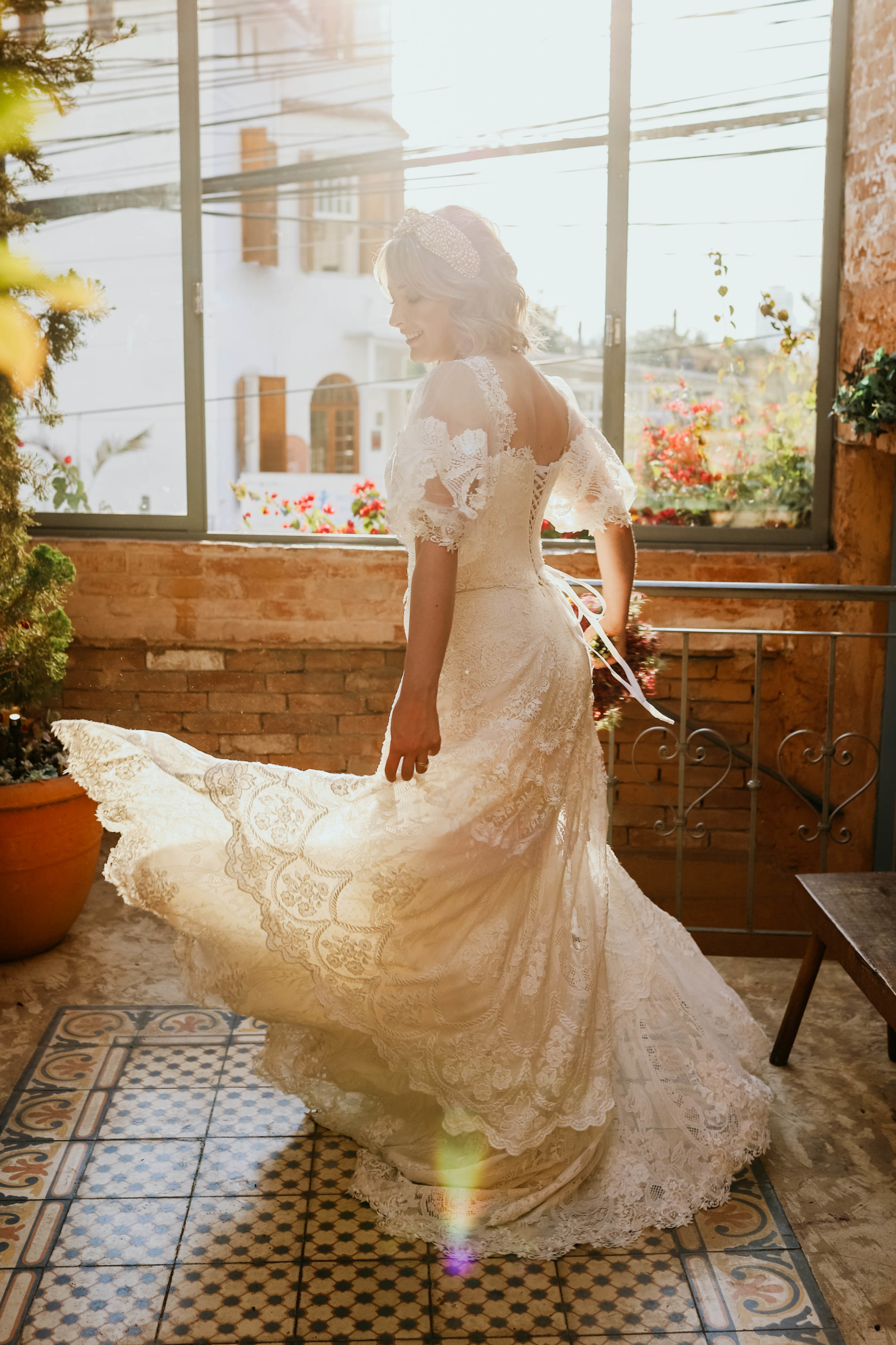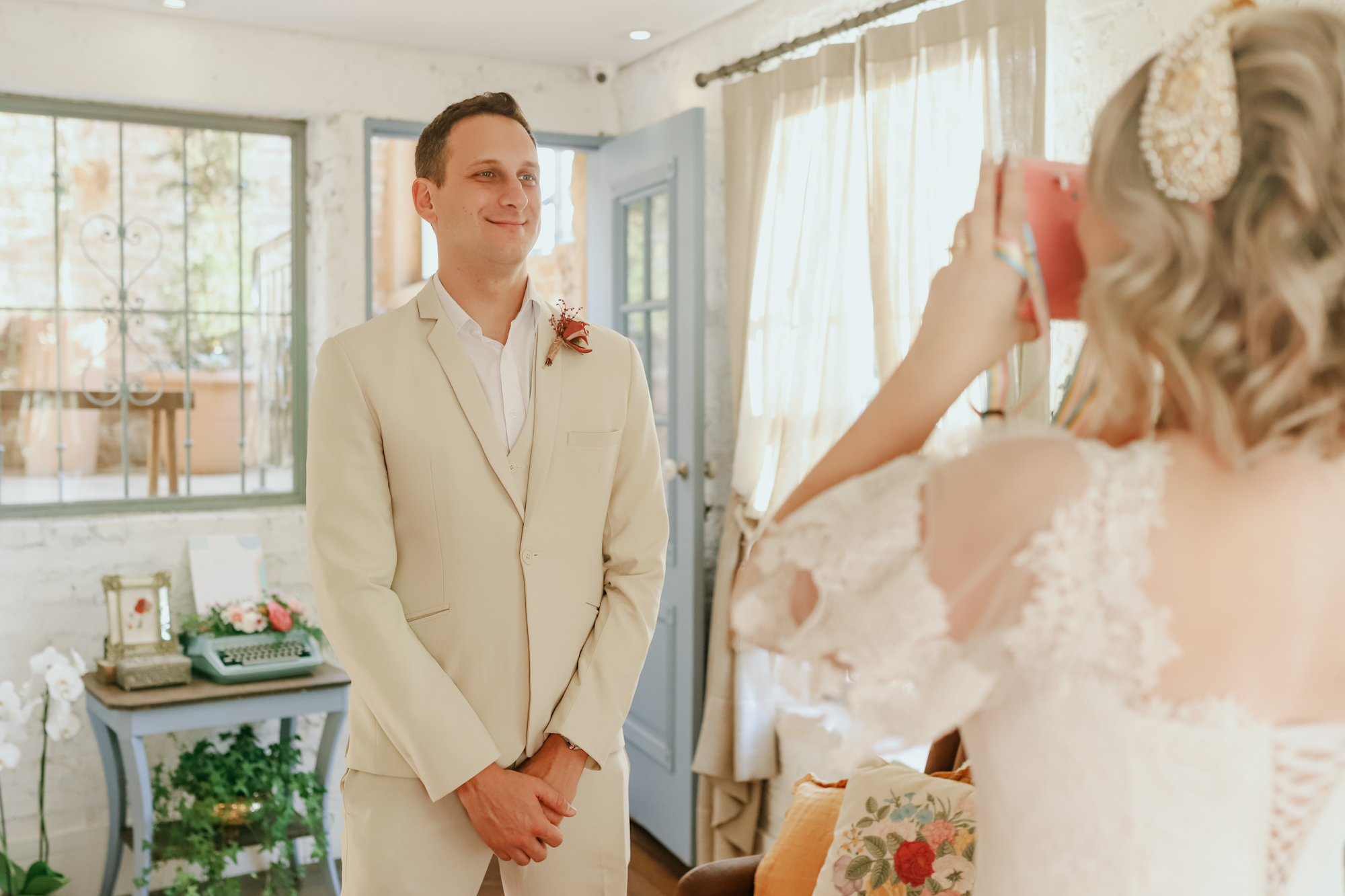 Das fotos espalhadas pela Casinha Quintal até o vestido, tão delicado quanto a própria noiva, tudo conspirou para momentos de emoção e romance.