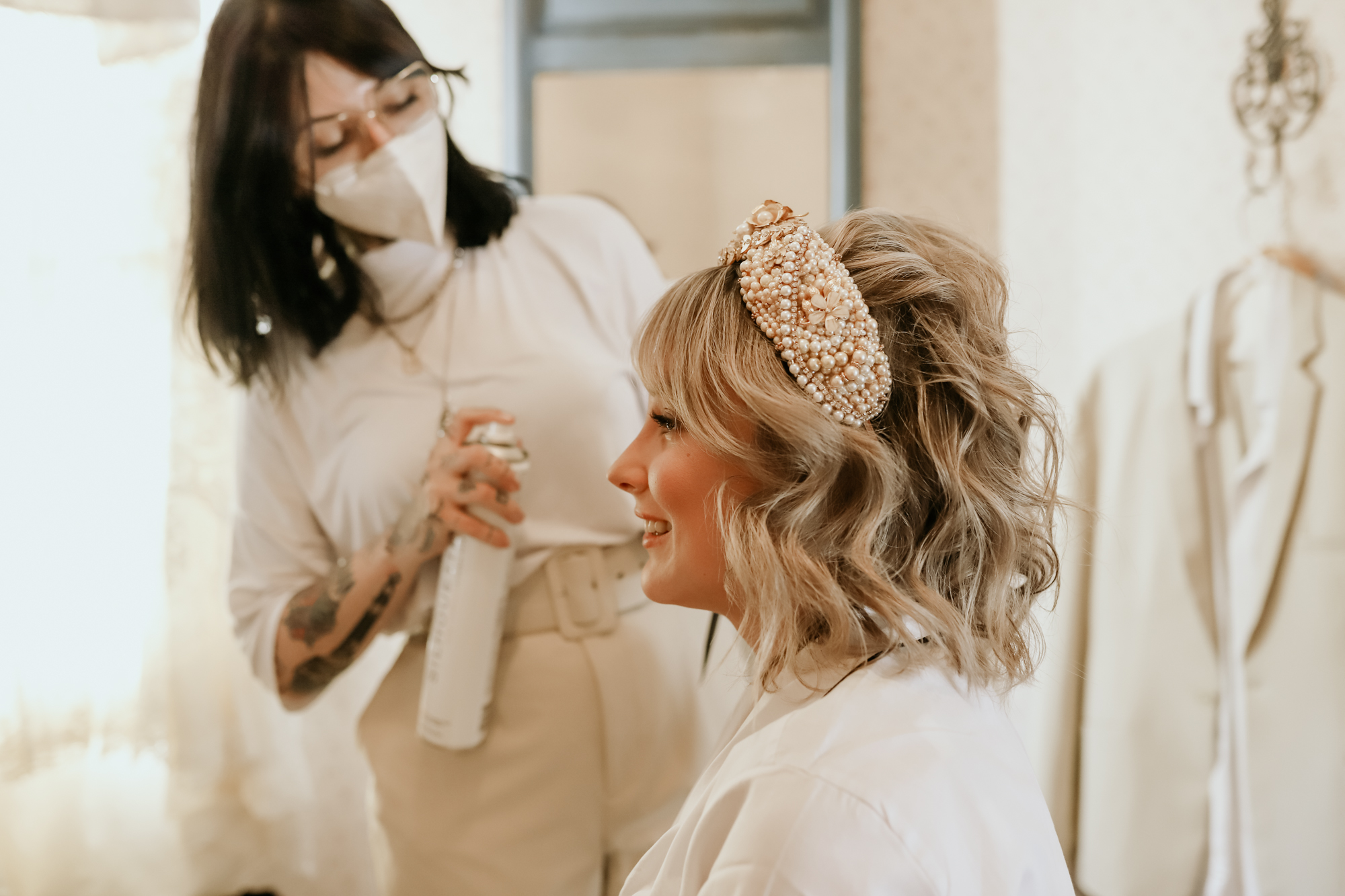 Danni, que já é linda, ficou uma verdadeira princesa moderna pelas mãos da Jess Monge. Cabelo e make impecáveis, leves e em sintonia com o modelo Casamarela.