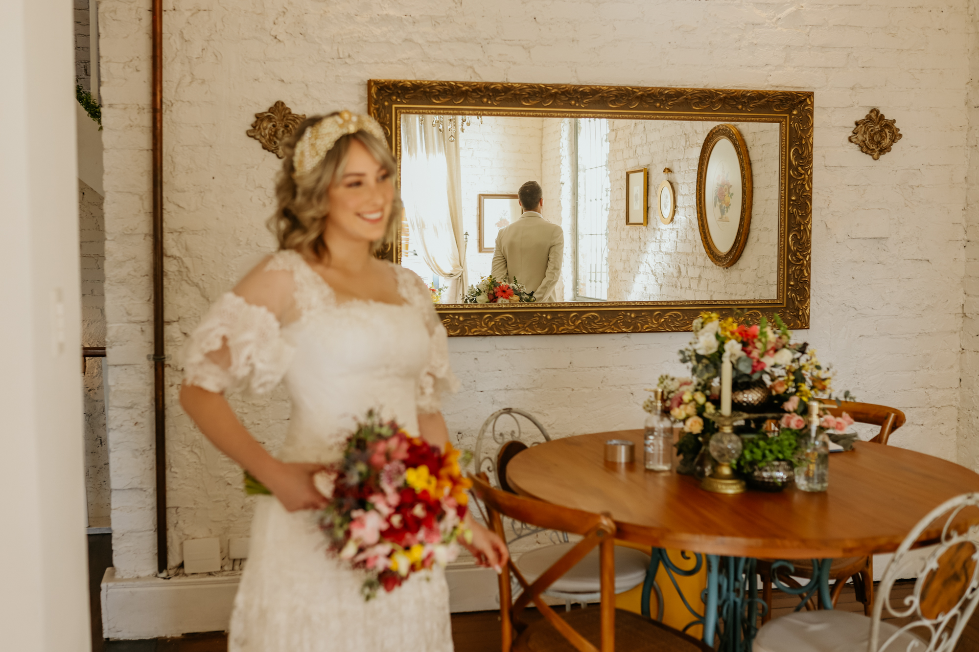 Lá o clima de home wedding é constante, com paredes de tijolinhos aparentes e a pegada vintage que tanto cativa.