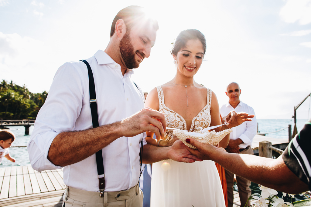 Logo após o pedido, em março do ano passado, definiram as prioridades para a troca de alianças: um enlace intimista com o mar como pano de fundo.