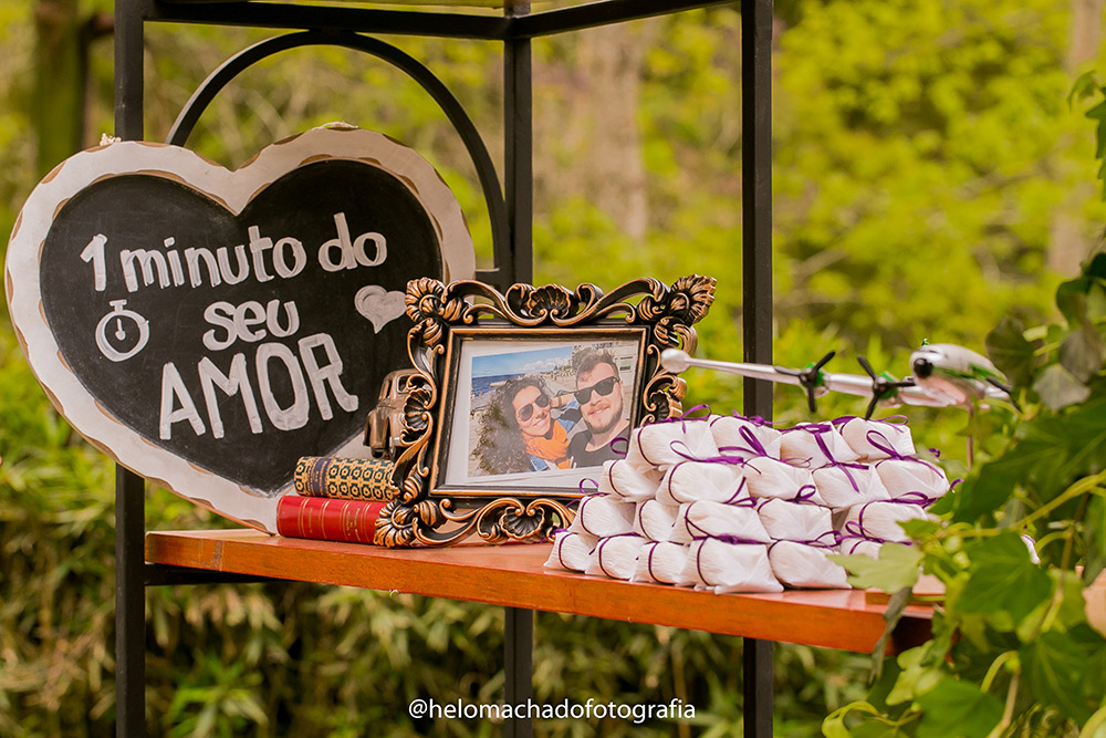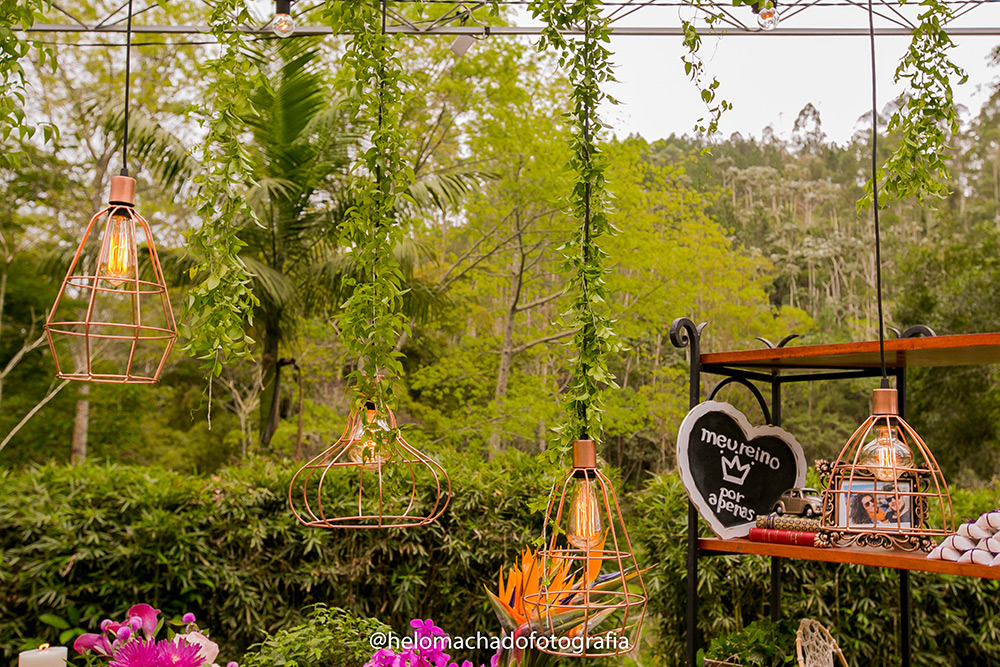 O cenário incluiu móveis da Roupa de Festa, fotos do casal, objetos pessoais e plaquinhas no estilo DIY (faça você mesmo).