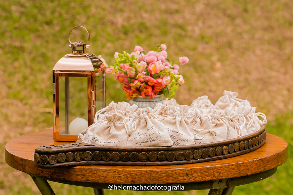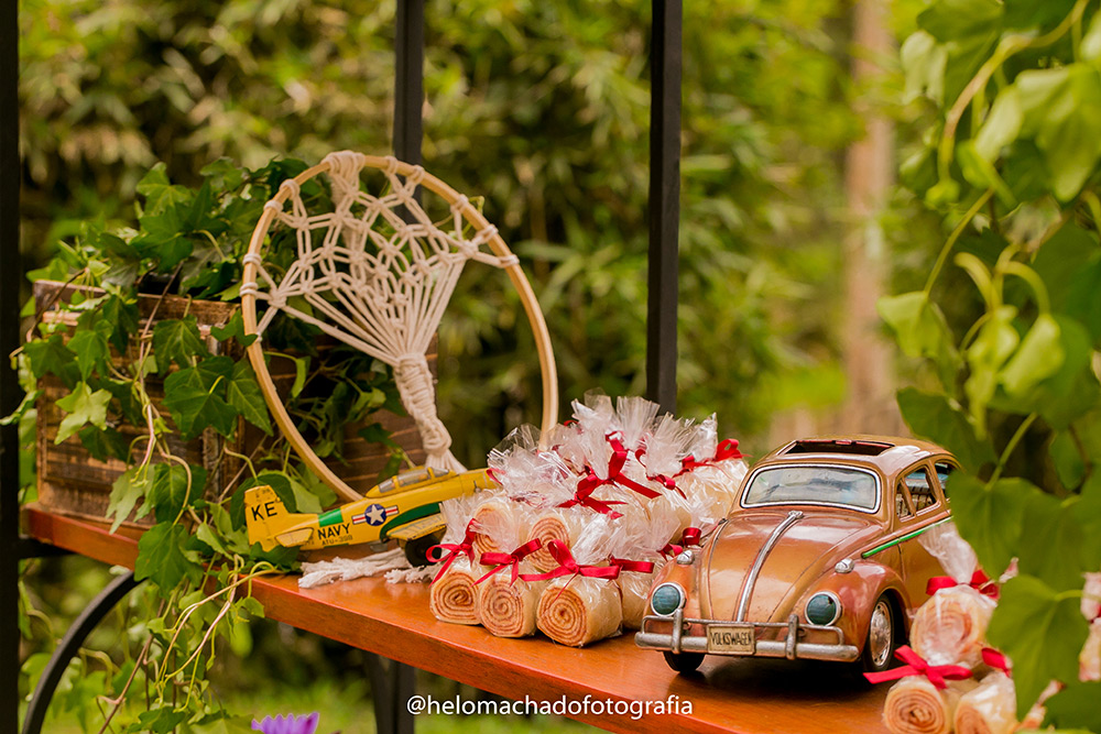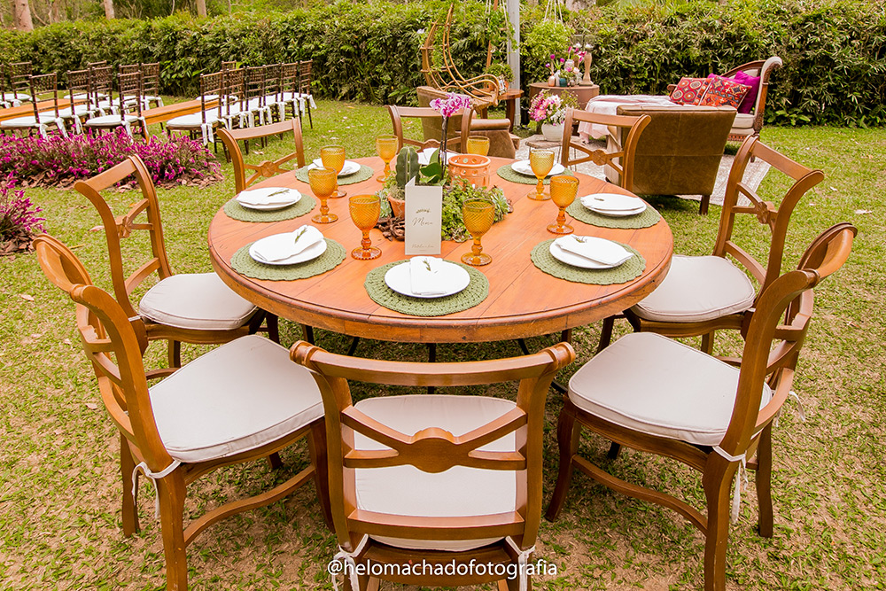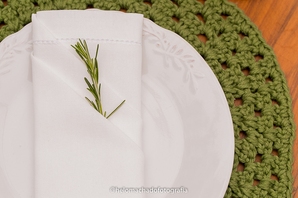 O clima artesanal ainda aparece nos sousplats de crochê feitos pela avó da noiva (muito amor!) e alguns macramês feitos pela mãe.