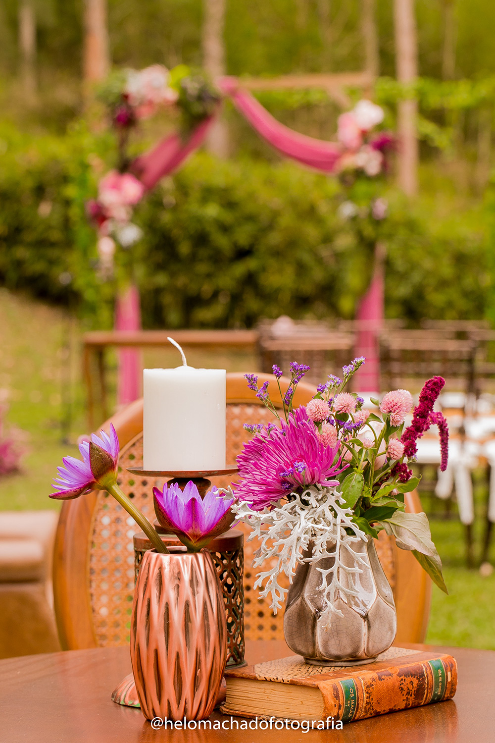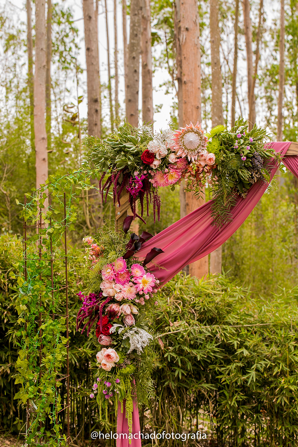 Quem ama decoração de casamento boho vai suspirar com as criações da Maria Pietroforte para a troca de votos da Natália e do Ivan.