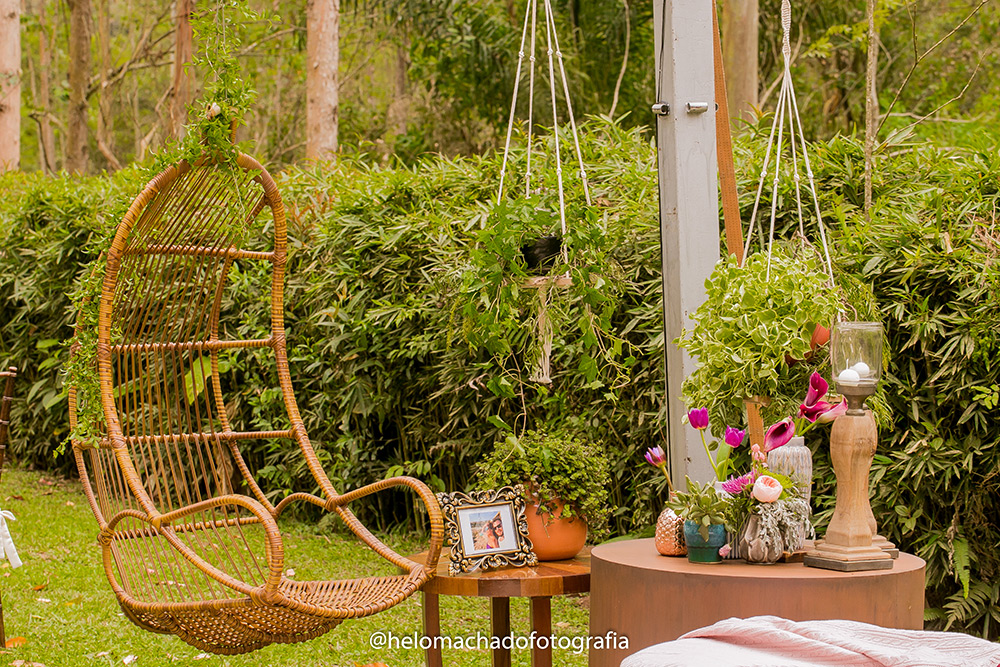 Para a Naty e o Ivan, que trocaram alianças no campo, o estilo escolhido foi o boho.
