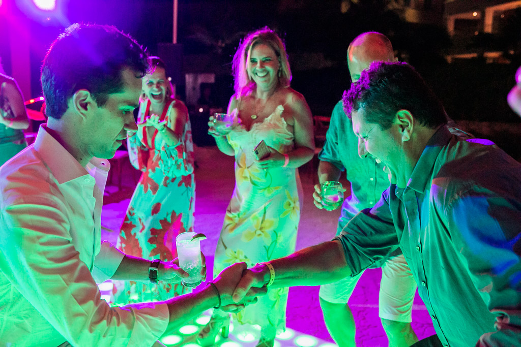 A festa aconteceu no Hard Rock Riviera Maya, de tal forma que os noivos aproveitaram quatro noites na presença de amigos e familiares. Recebemos convidados espalhados pelo Brasil e Estados Unidos. Simplesmente demais! Os convidados foram pura animação o tempo todo.