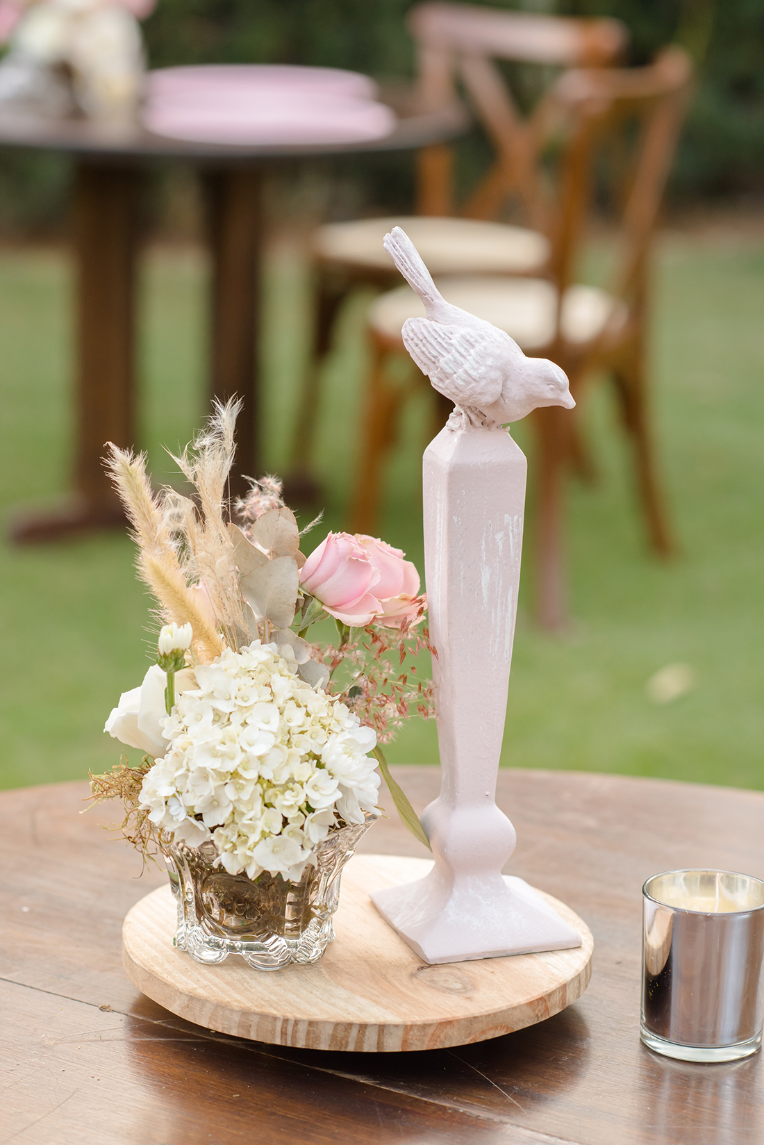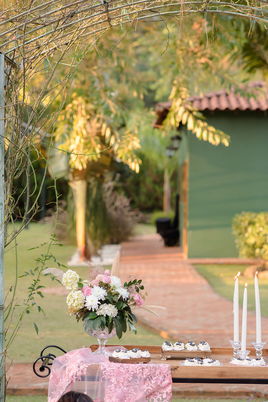 A decoração que ditou o clima de romance também foi executada à altura. A equipe da Rosalina Decoração caprichou em cada pedacinho do evento, do arco preparado para fotos até as mesas, que tiveram ainda as louças e itens especiais da Ritz Festas.