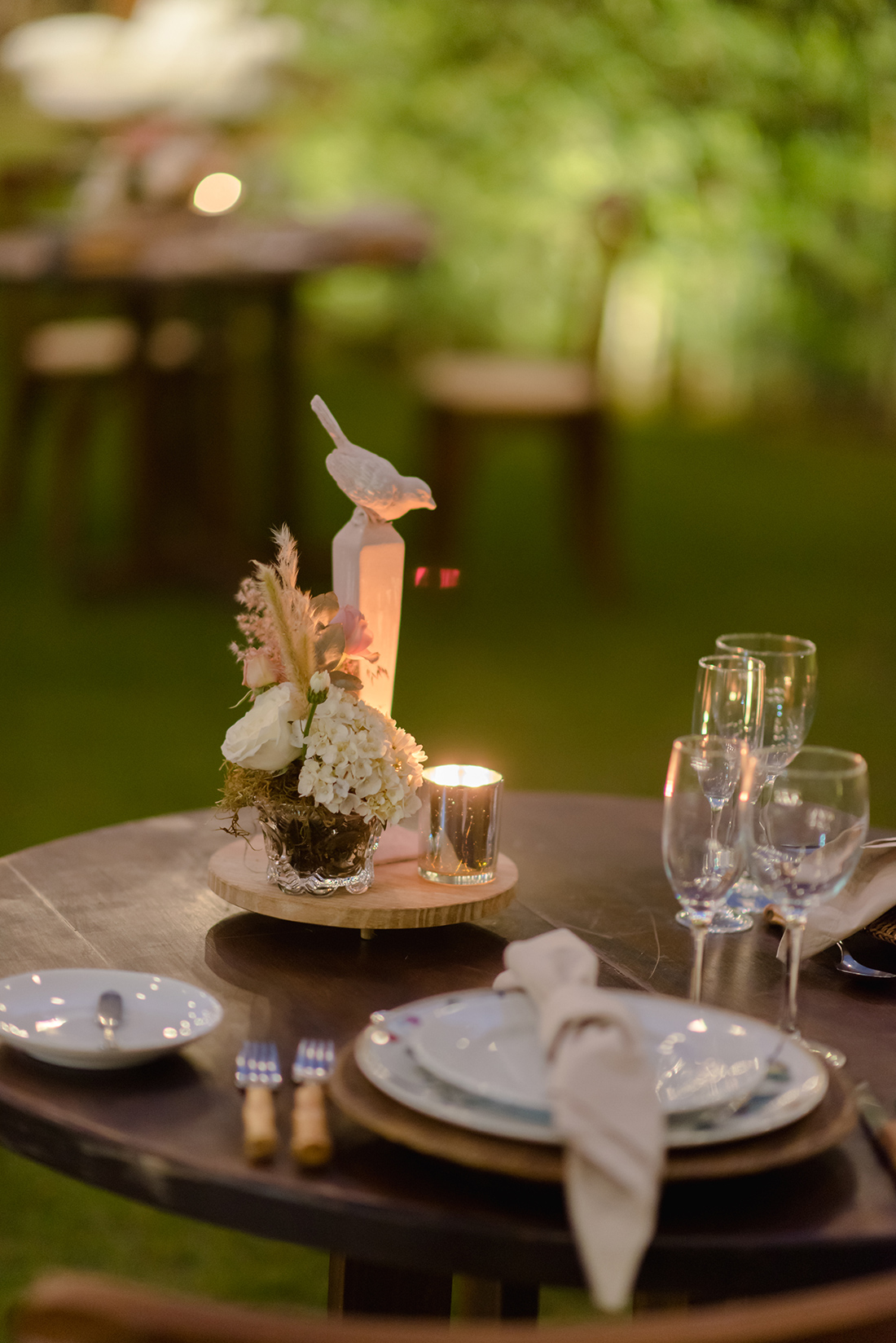 Foi aí que tivemos um insight: que tal um evento bem pequeno, para poucos casais e com todos os protocolos necessários para o cenário atual?