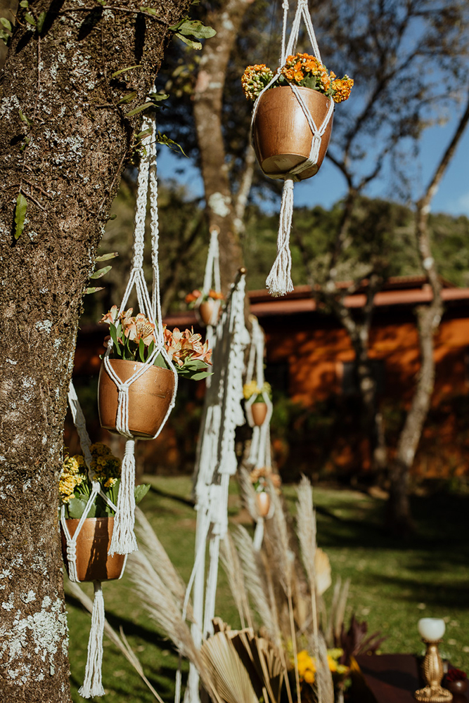 ♥ O macramê e a pegada artesanal aparecem em vários momentos, principalmente na lembrancinha.