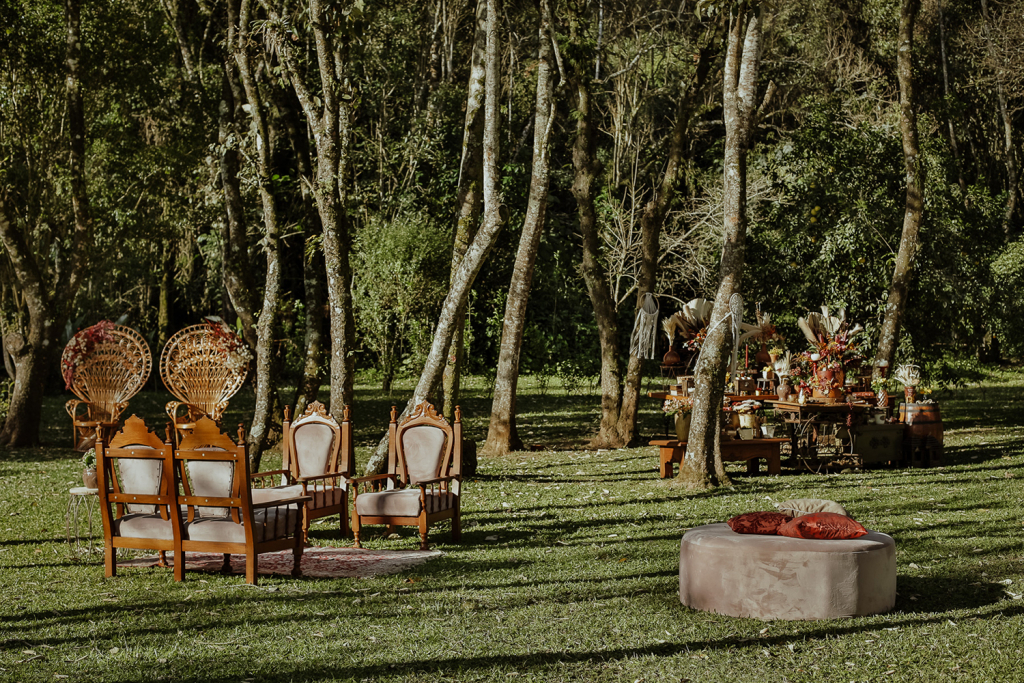 A produção pautada no melhor do boho chic aconteceu no bosque do Espaço Ravena Garden.