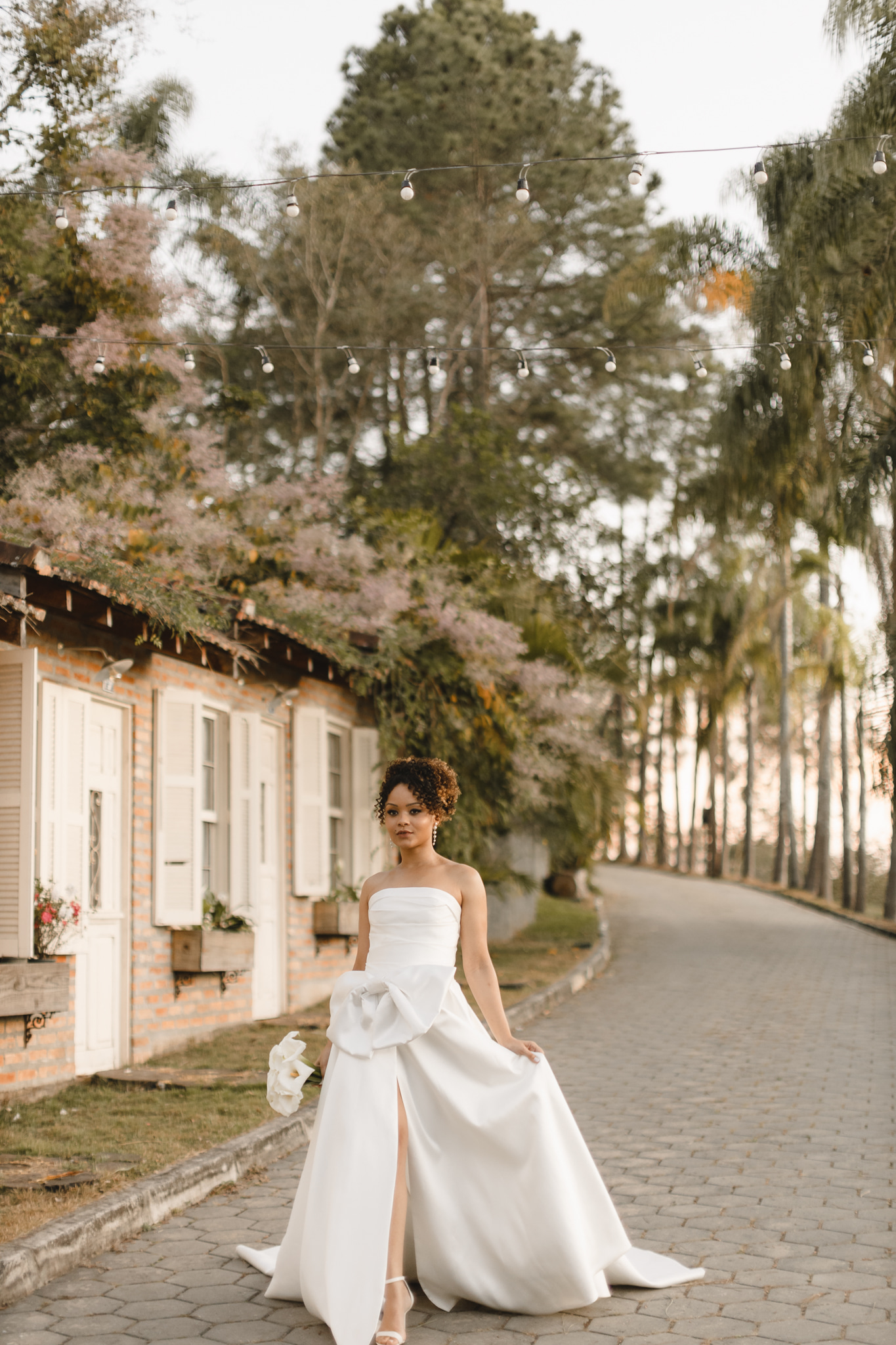 O arremate ficou por conta dos acessórios Alessandra Cazzaro. Brincos e grinalda deram o toque final, completando a vibe romântica e moderna.
