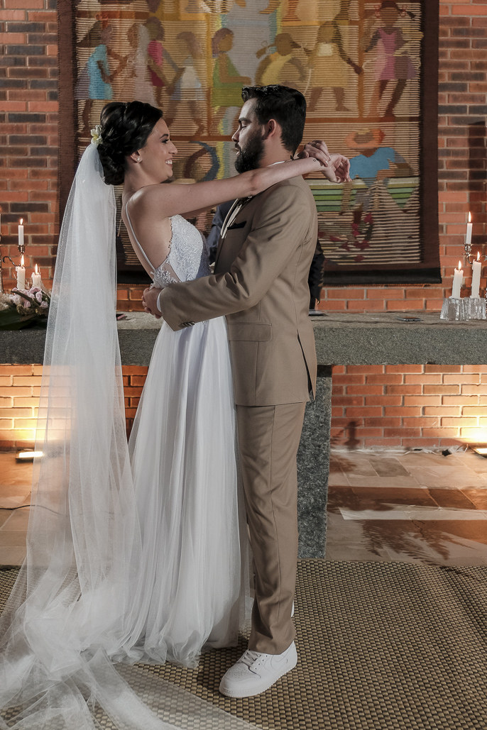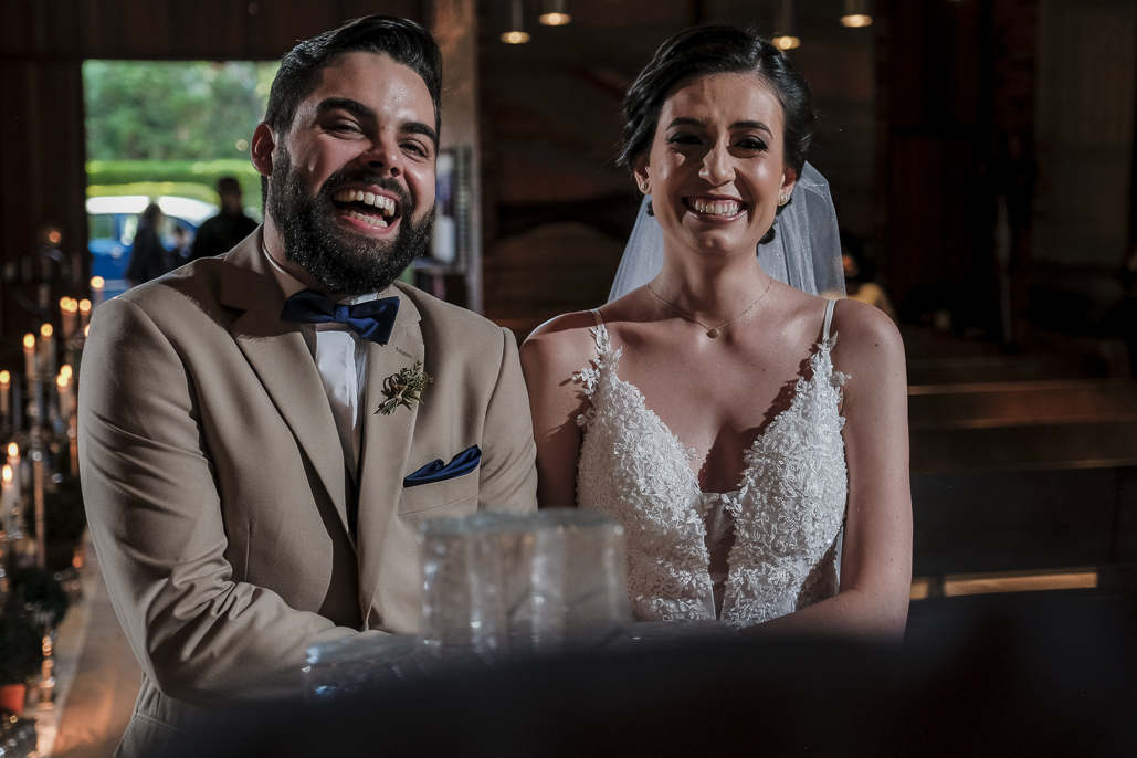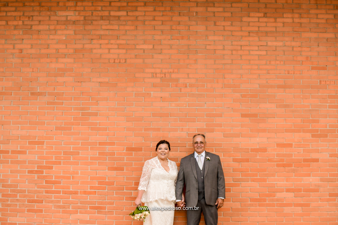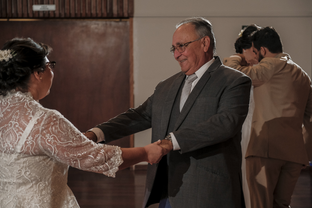 Um casamento a dois marcado por muita alegria, troca de olhares e mãos dadas.