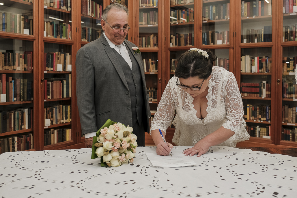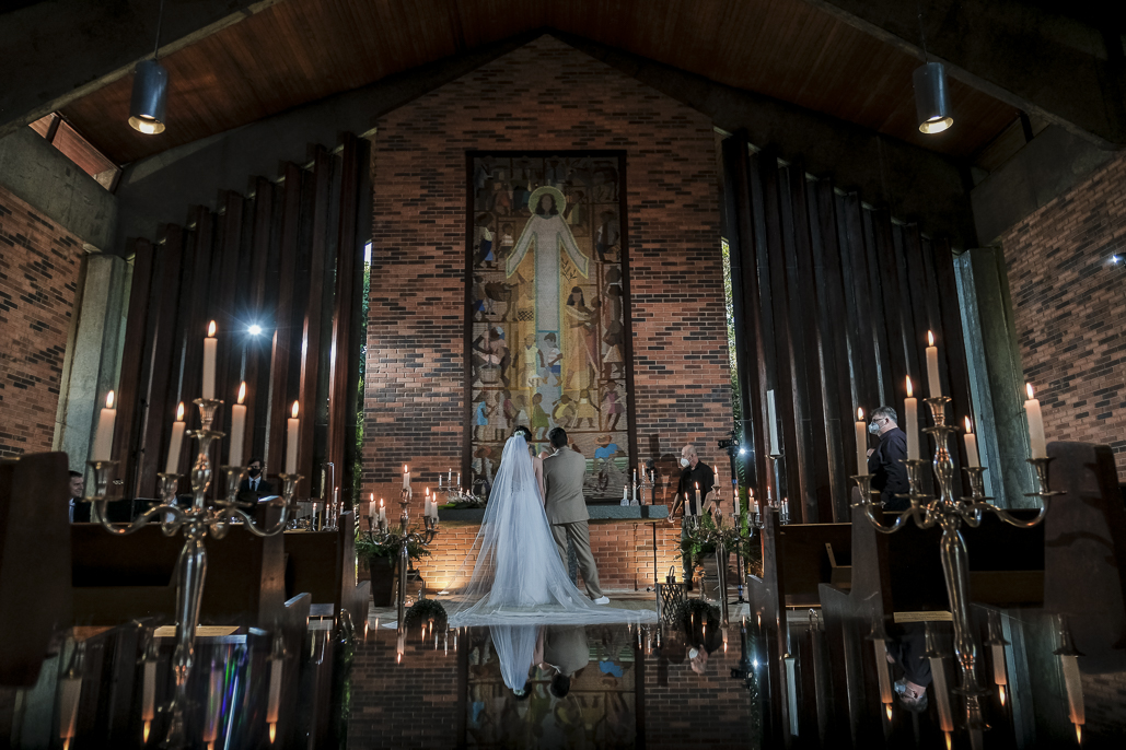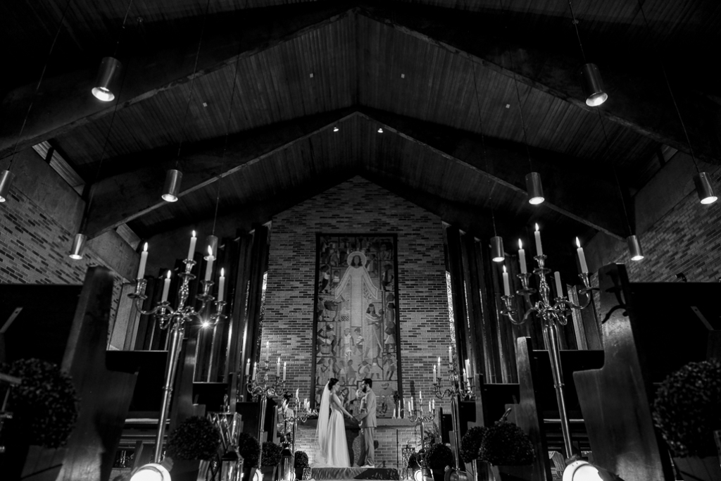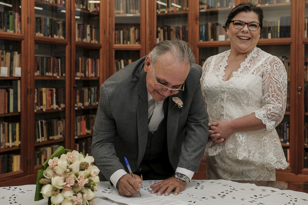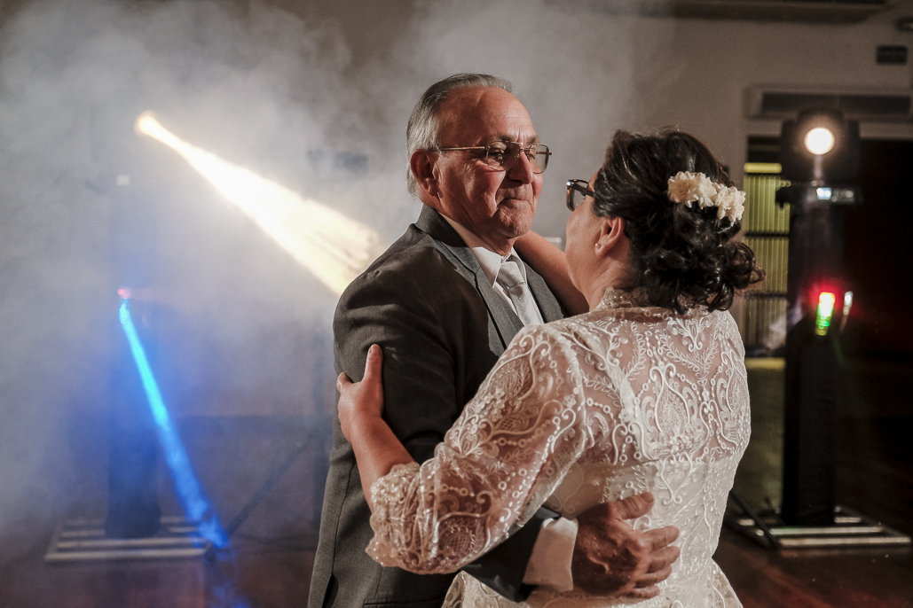 Um casamento a dois marcado por muita alegria, troca de olhares e mãos dadas.