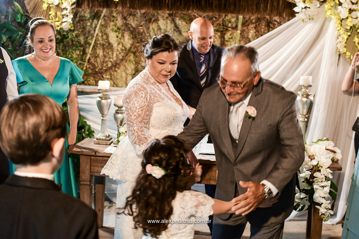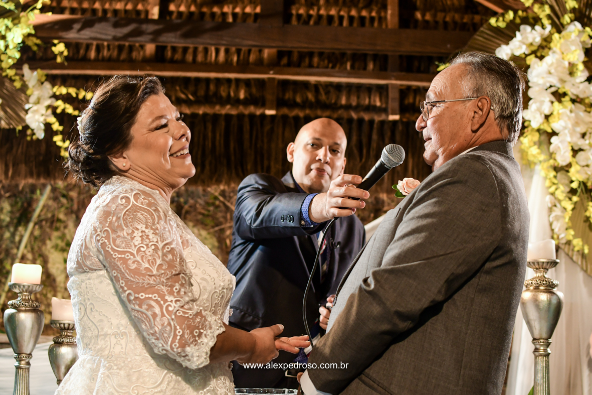 Em seguida veio a troca de alianças da Eliane e do Edson, noivos maduros e donos de uma história inspiradora.