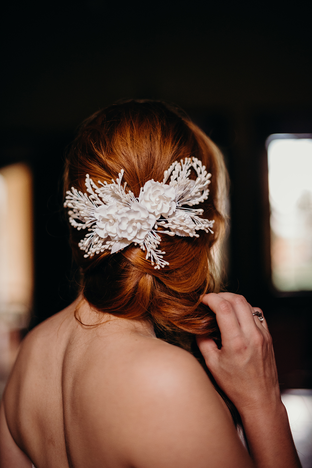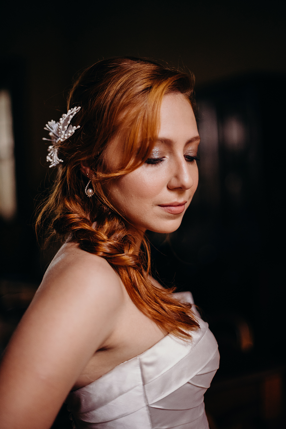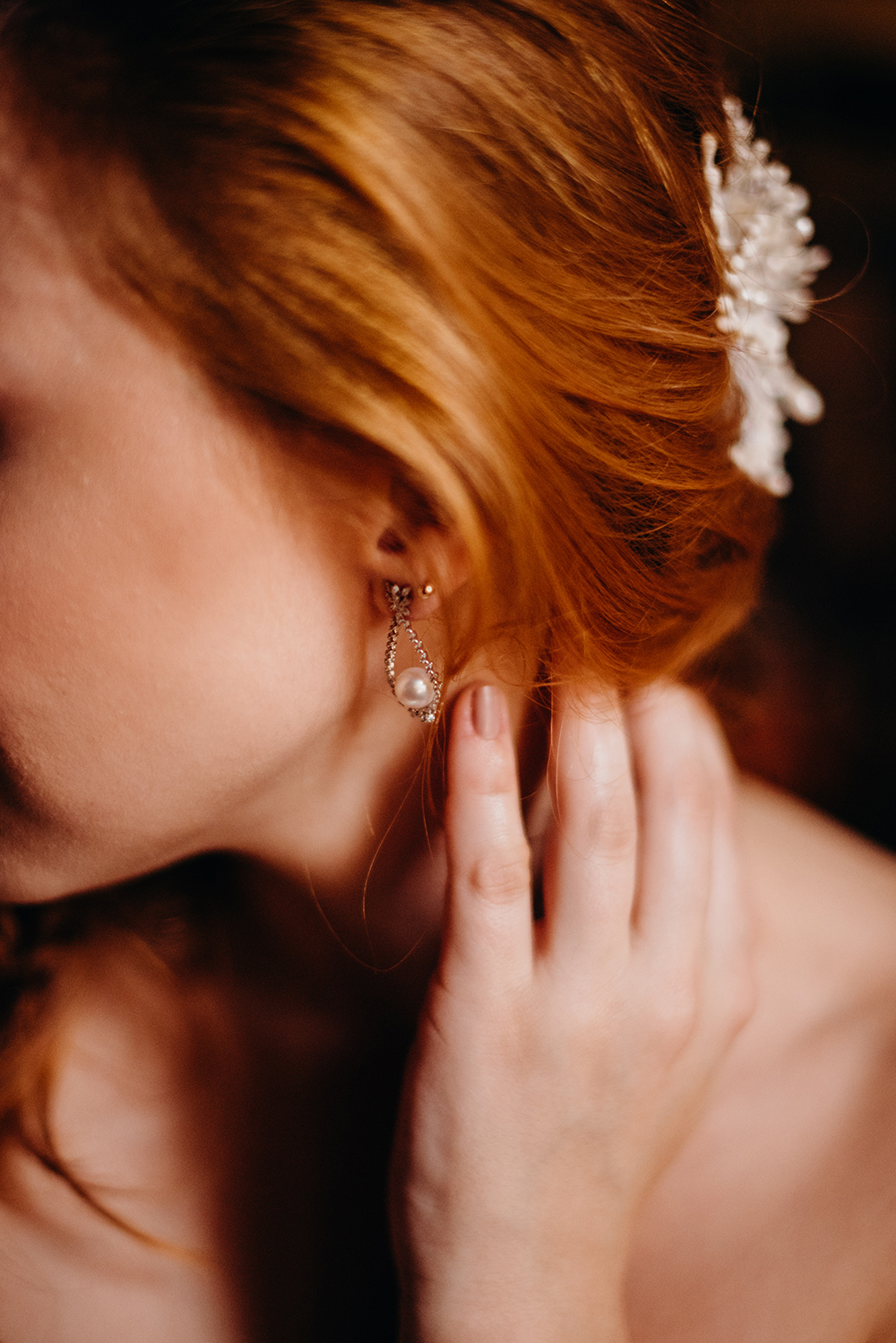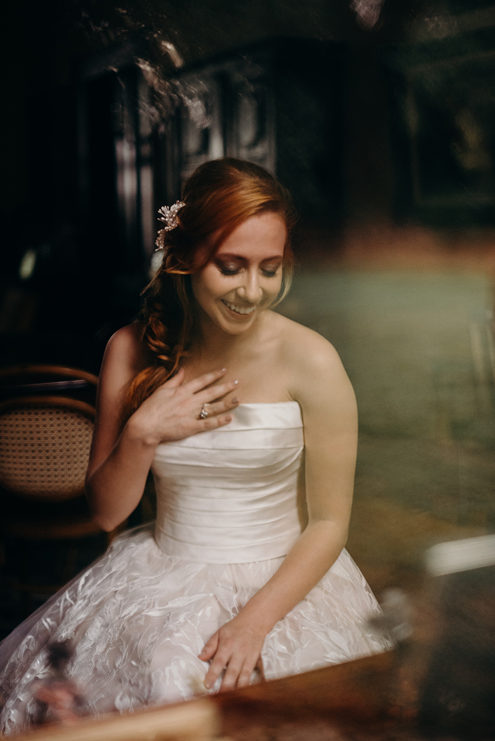 Fomos escolher o vestido de noiva, e contamos com o dom de encantar do Marco Castioni, que escolheu um vestido extremamente romântico, num tom levemente rosado. Como complemento, peças singulares do Miguel Alcade.