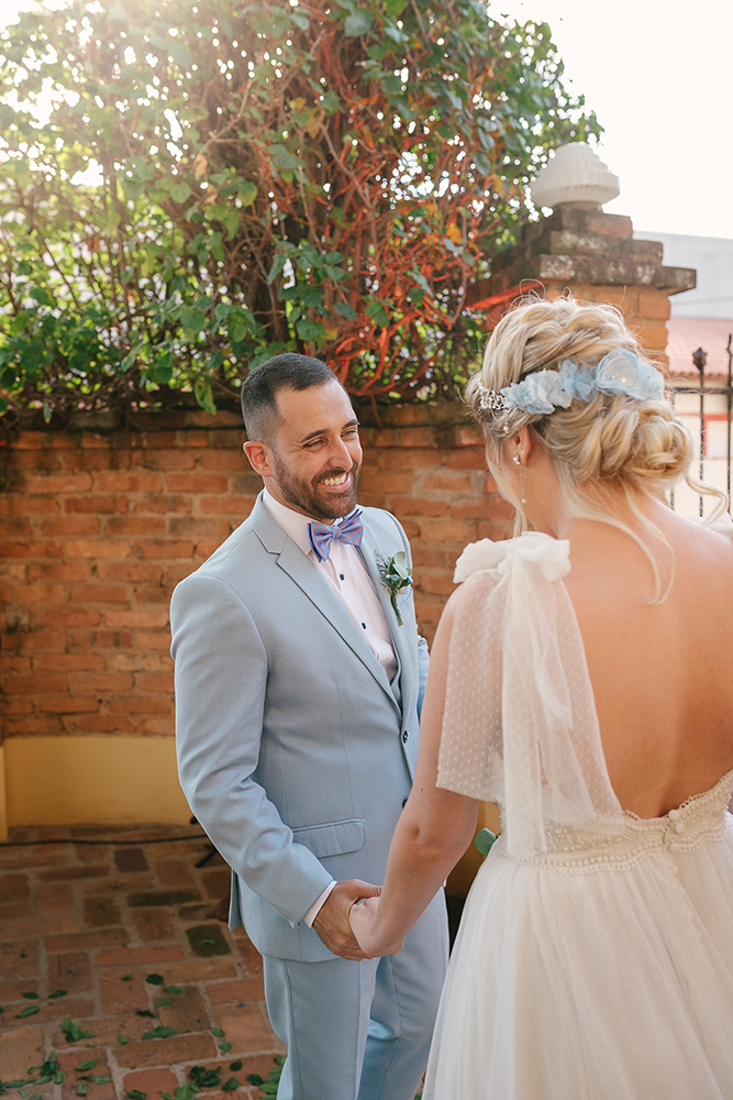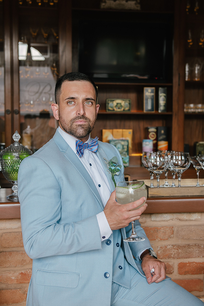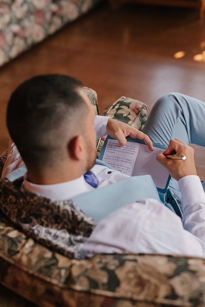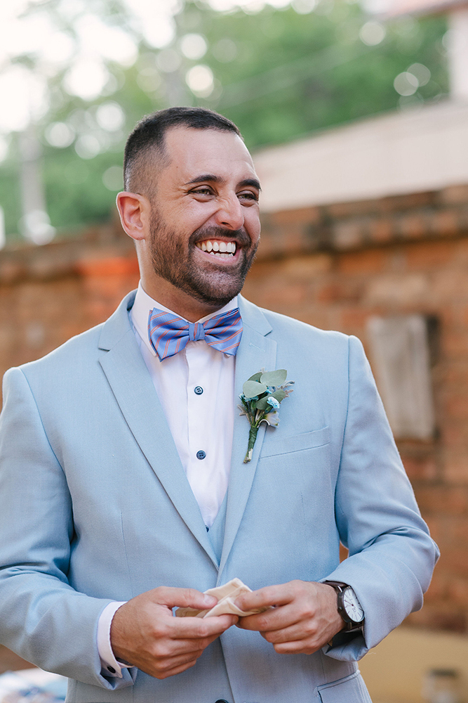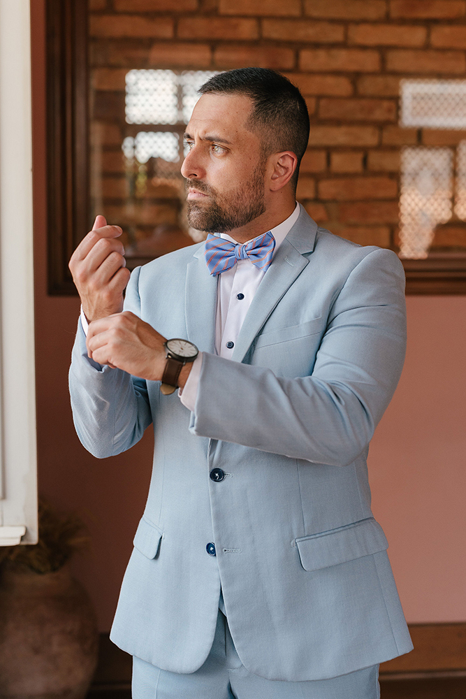 O traje do noivo, assinado pela Villa Roma Limeira, foi pensado especialmente para o Marcus, seu tom de pele e olhos claros. Sim, porque o noivo também merece essa dedicação e carinho!