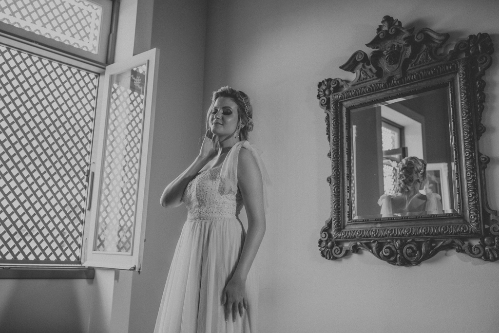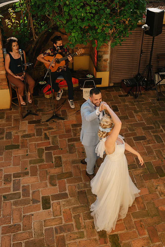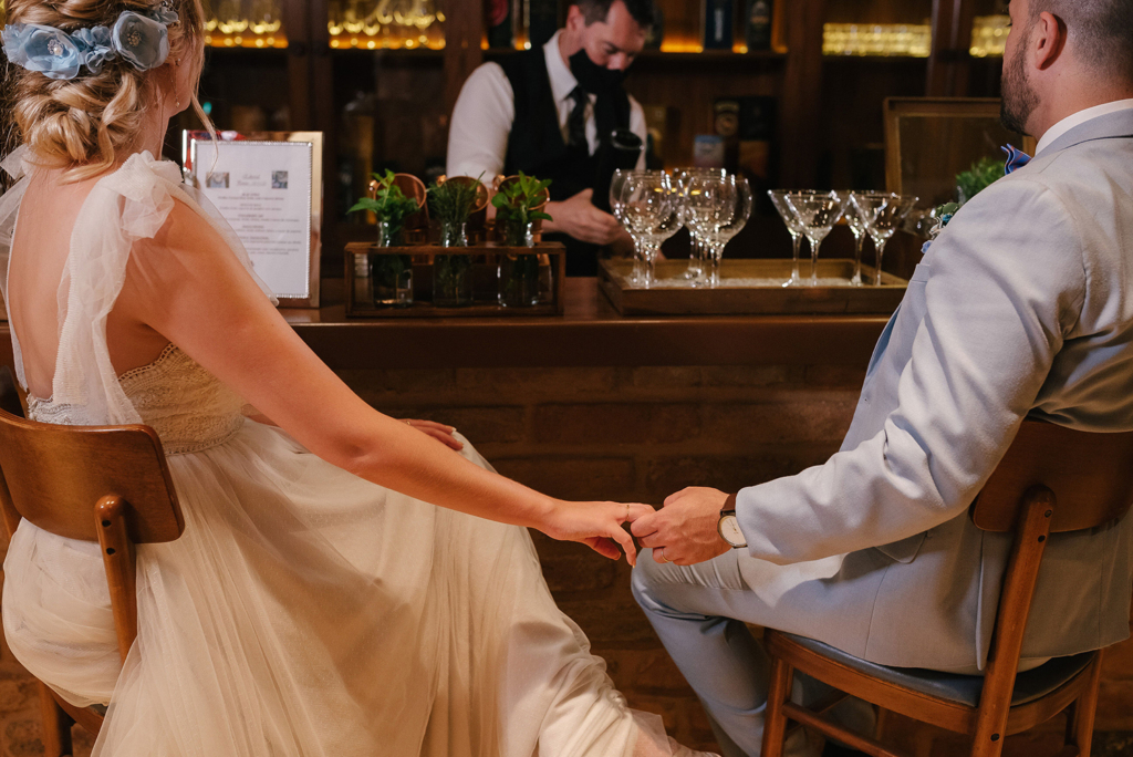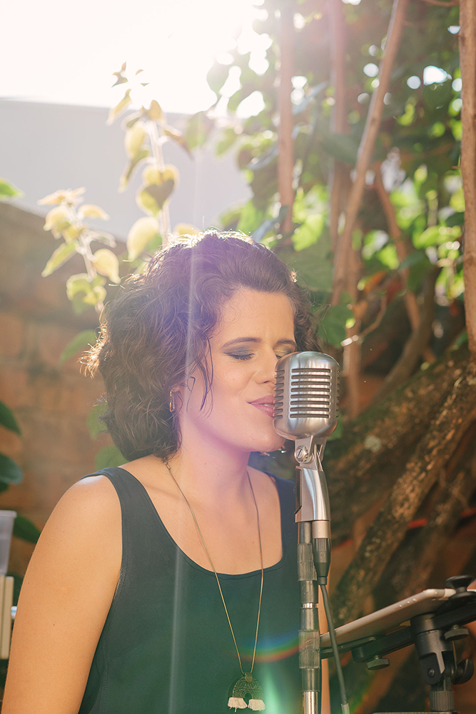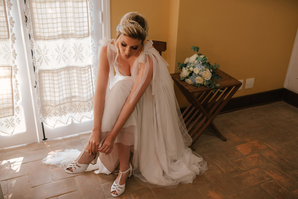 E a lista de itens encantadores segue no acessório, no vestido de noiva e na beleza natural, com cabelos presos e olhos marcados. Na música agradável que embalou a cerimônia, na celebração leve e emocionante…