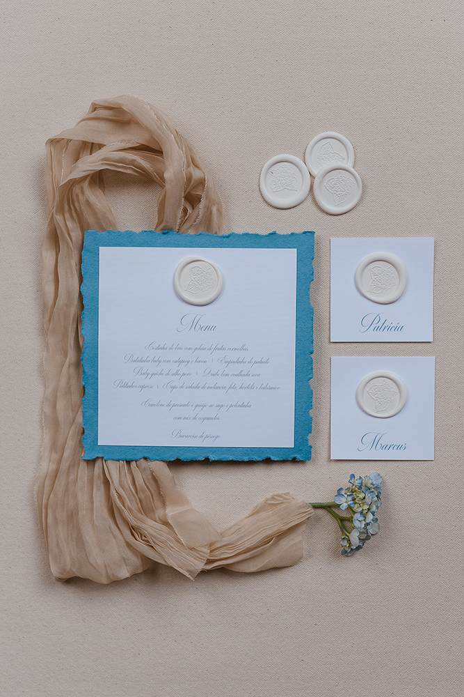 A paleta de cores se repetiu na papelaria e demais itens. Elegante na medida, com a assinatura da Galliari Design.