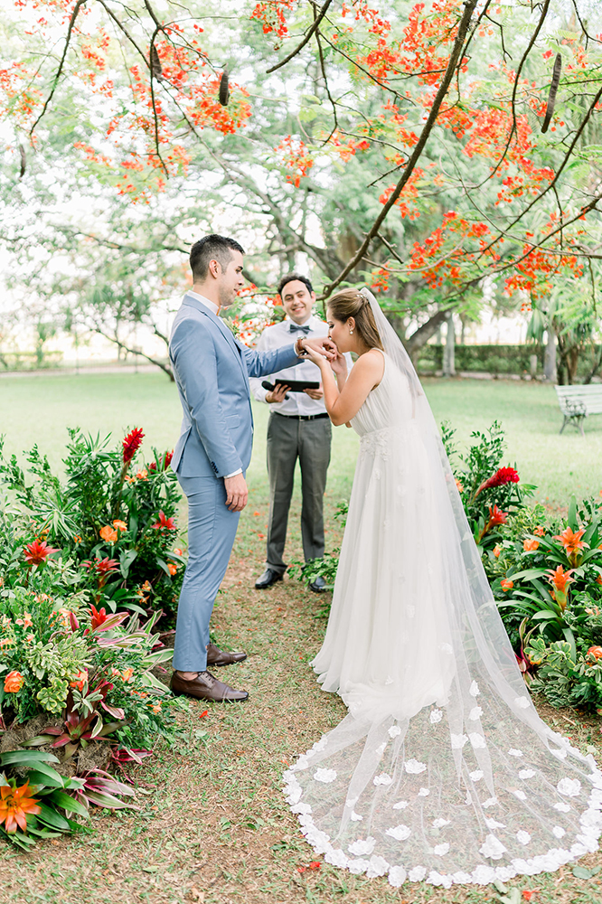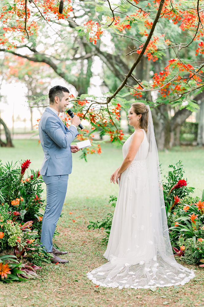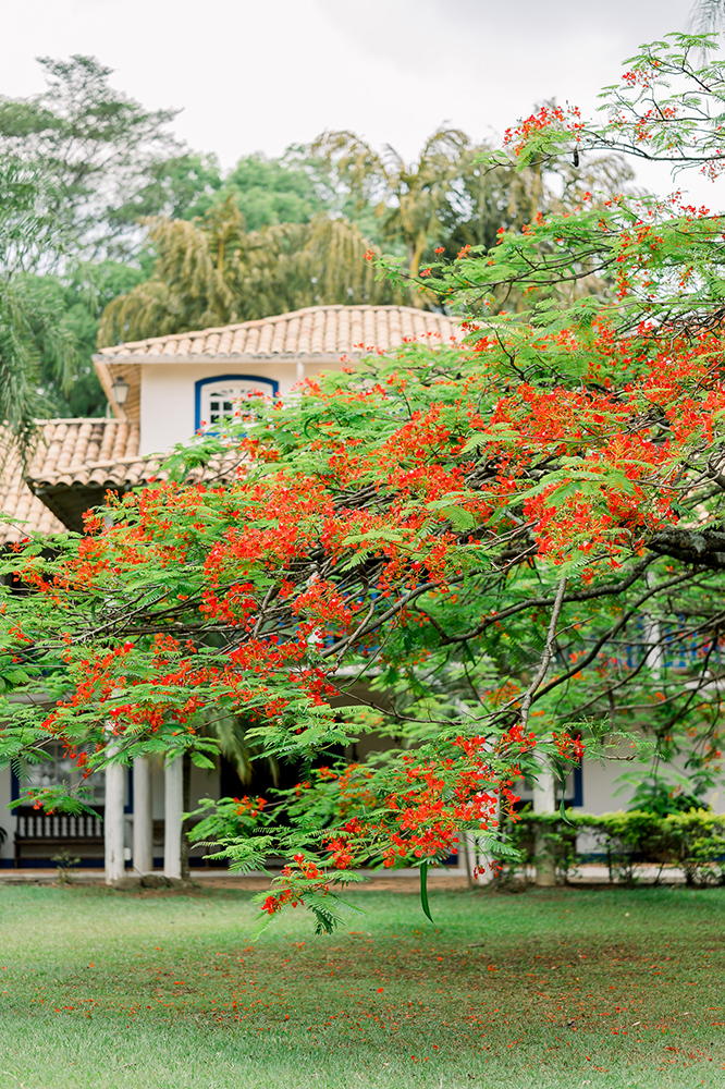 Um dos elementos que serviu de inspiração, o Flamboyant, aparece como coadjuvante em muitas fotos, e dá uma ideia da sensibilidade que inspirou esse dia tão romântico.