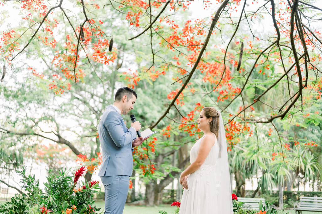 Criamos todo o cronograma e cerimonial com base no que fazia sentido e seria especial para o nosso casal, do first look até a troca de votos.