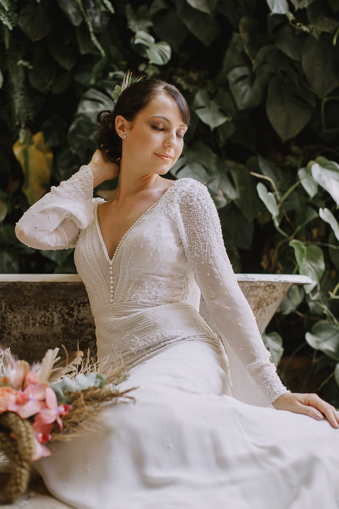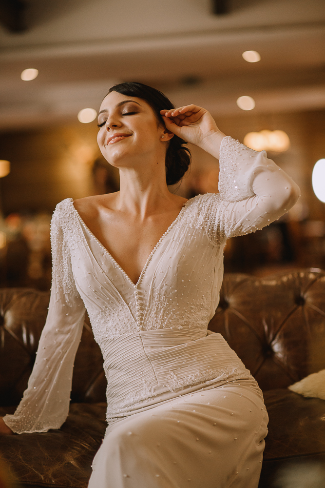 Já o segundo vestido, com mangas longas e mini pérolas aplicadas, grita segurança e personalidade. Também lindo de viver!