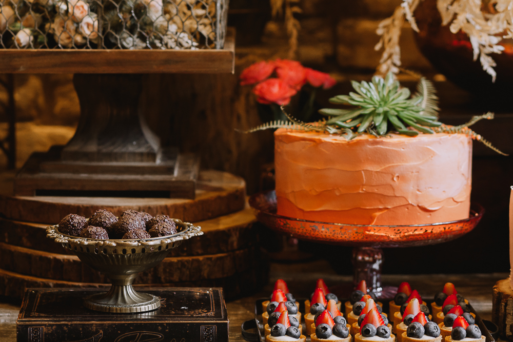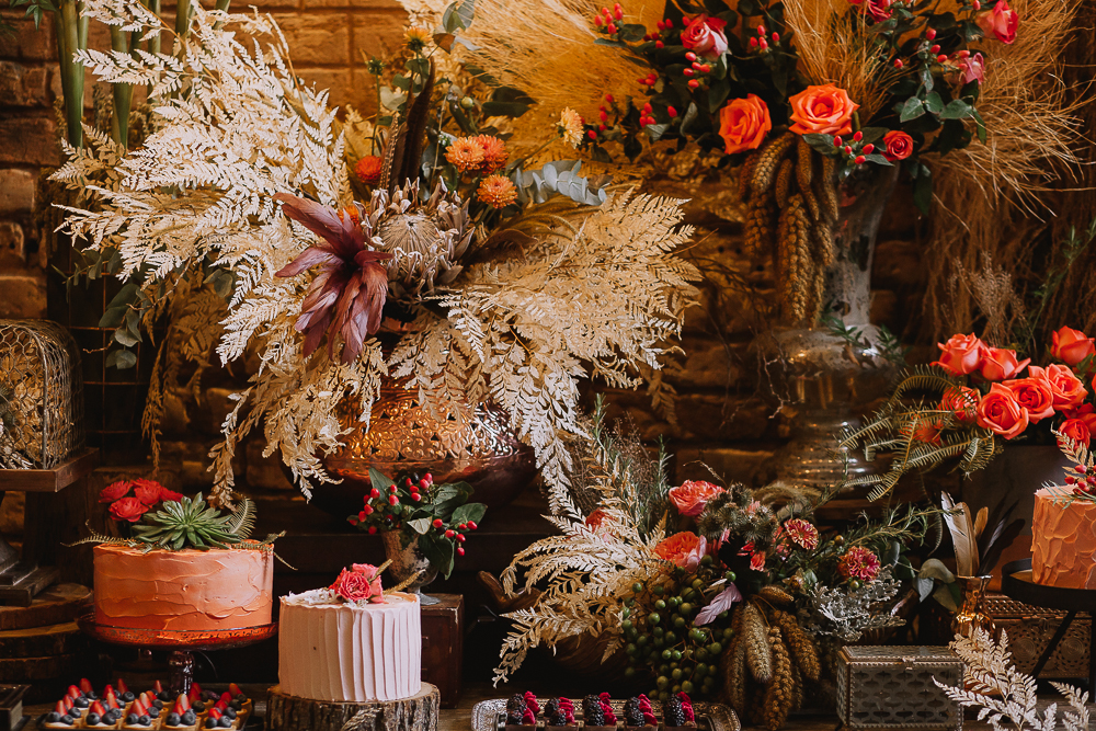 Além da decoração de babar da Lamore, nossa super mesa com toques de living coral teve os doces impecáveis da Soul Sweet (amor verdadeiro!), que combinaram muito bem com o toque boêmio das flores e arranjos.