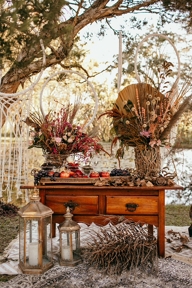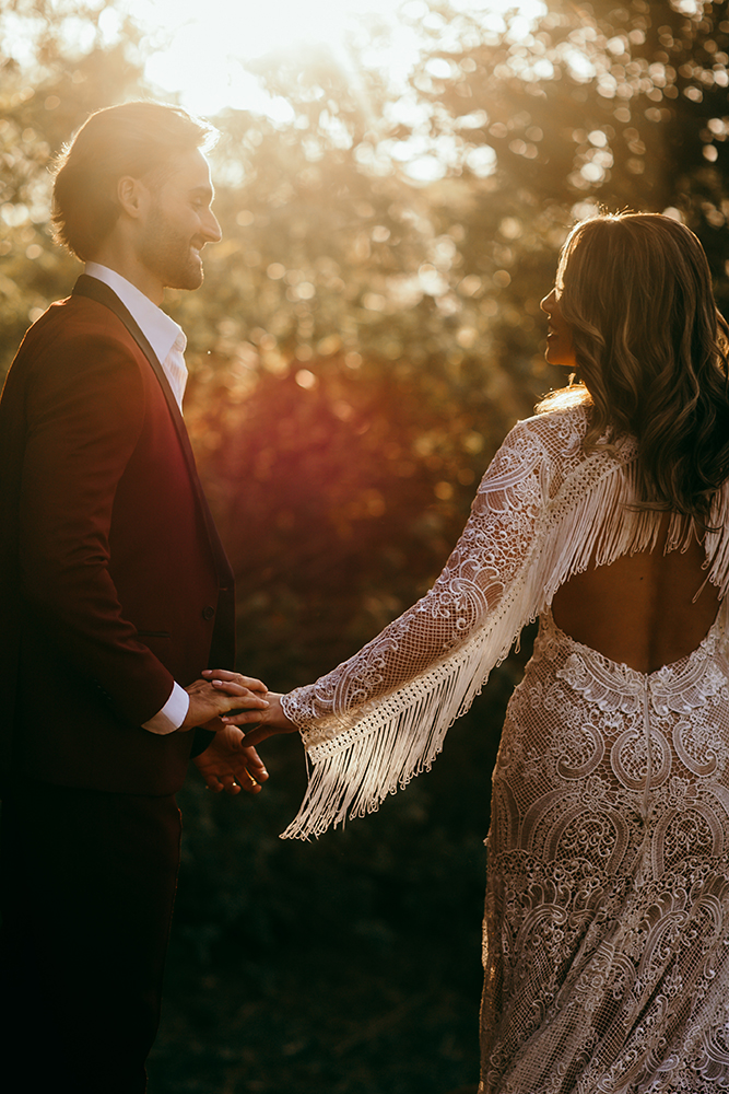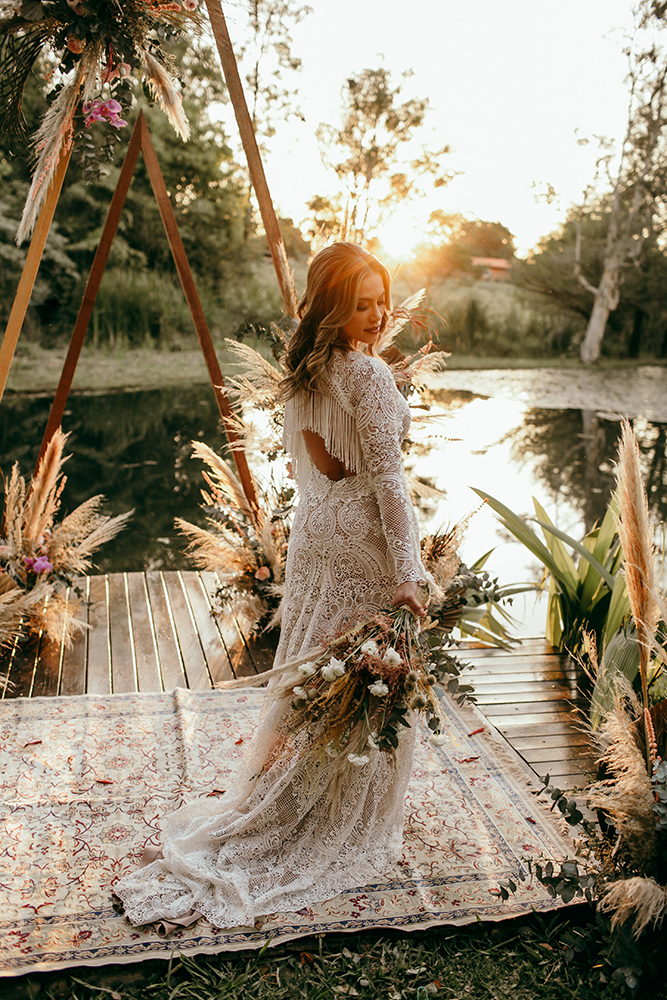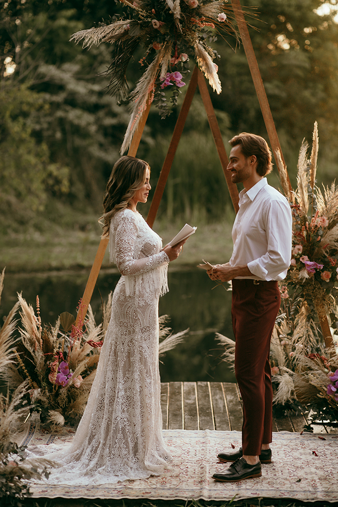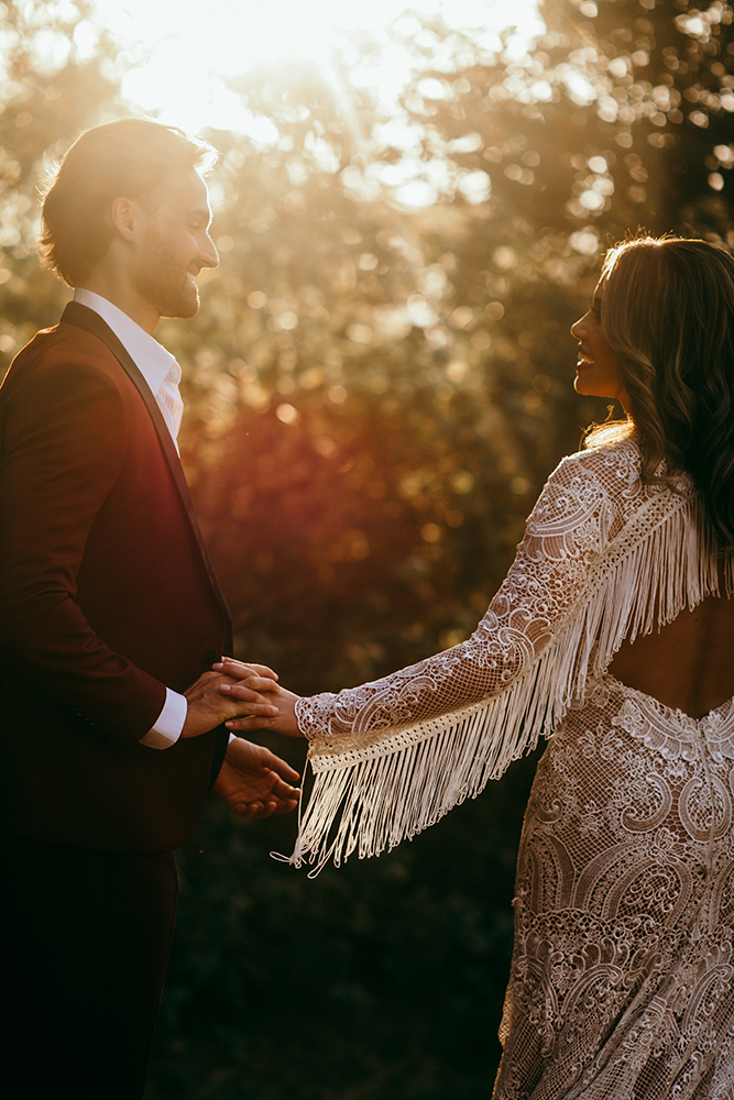 Amanda e Bruno tiveram um elopement wedding boho, com direito a macramês, capim dos pampas e tudo mais que o estilo rústico chique merece.
