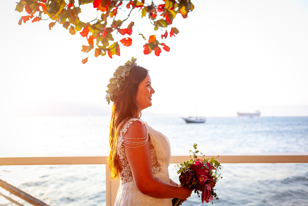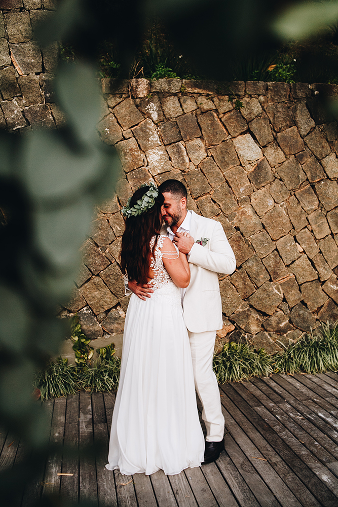 A Marcia ficou linda com look Helen Salles e beleza executada pela My, A Bela da Ilha. O vestido de noiva leve e delicado não poderia ser mais perfeito para a ocasião!