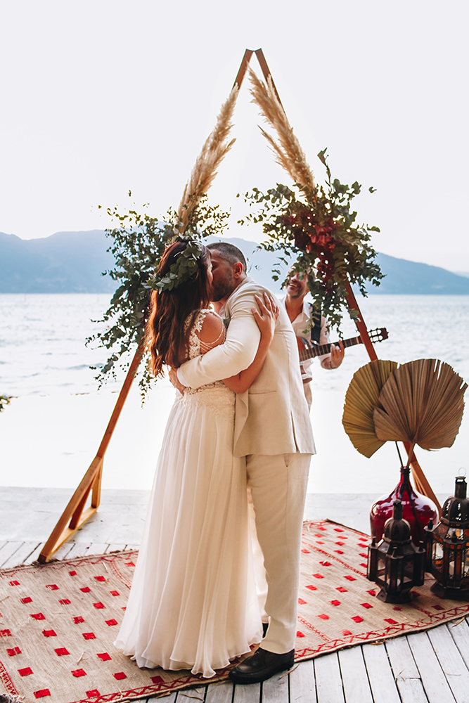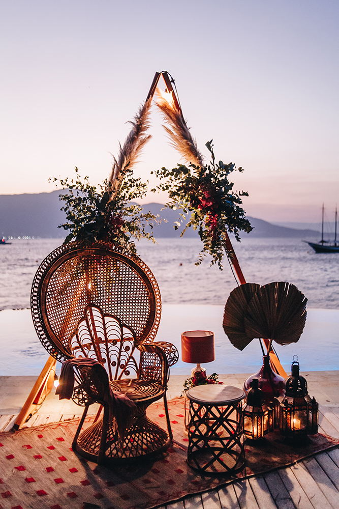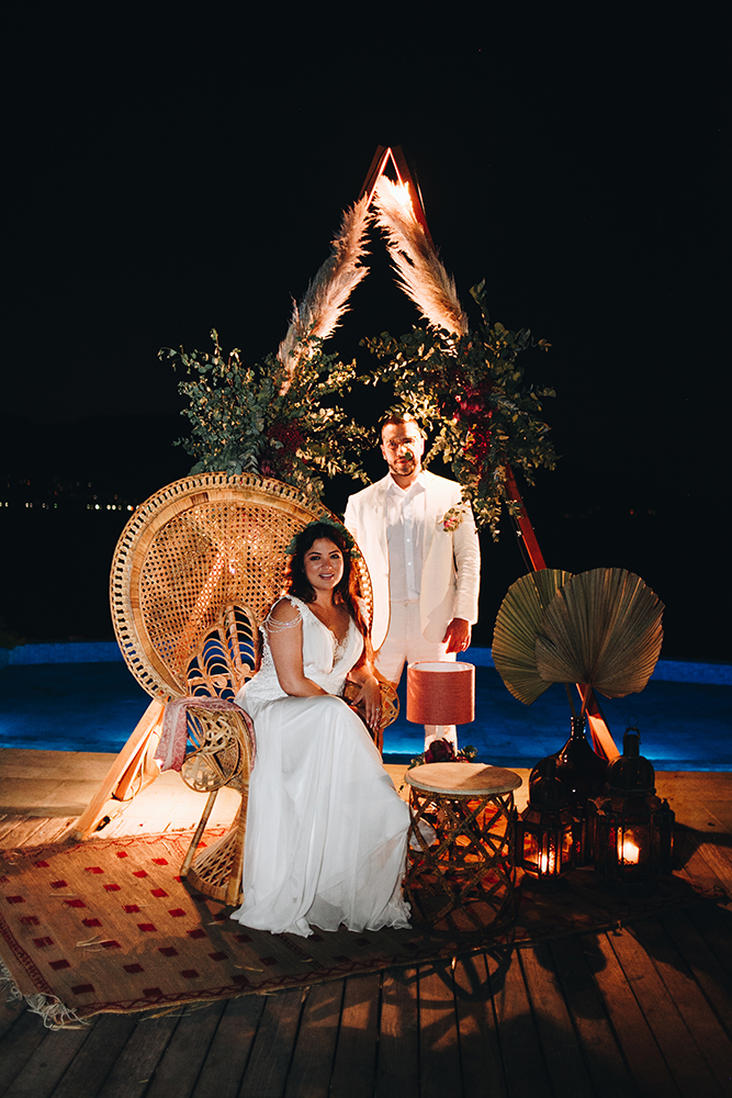 Além da beleza natural, Marcia e Mauricio foram brindados pelo clima aconchegante, que ficou ainda mais explícito com a decoração boho chic.