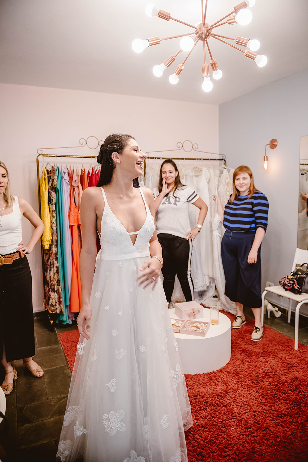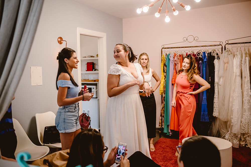 Além de provar vestidos de noiva, foi uma oportunidade e tanto para bater papo com a estilista Renata Castro e com a Mari Tahan, responsáveis pela Something Blue.
