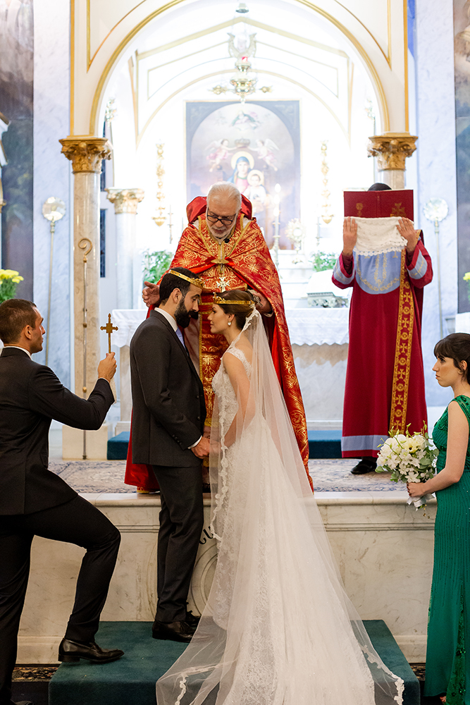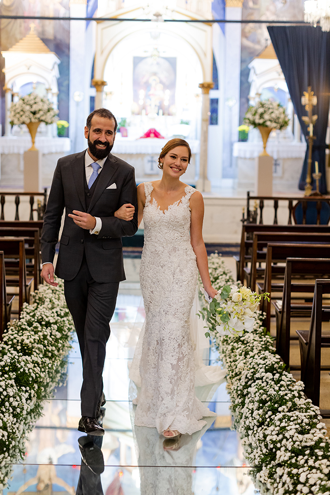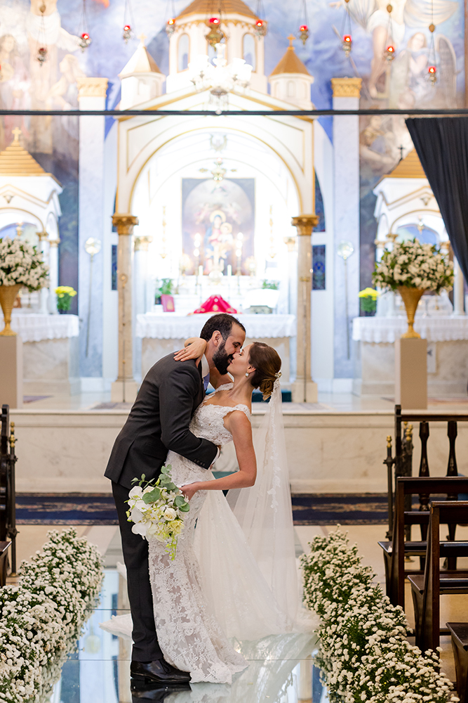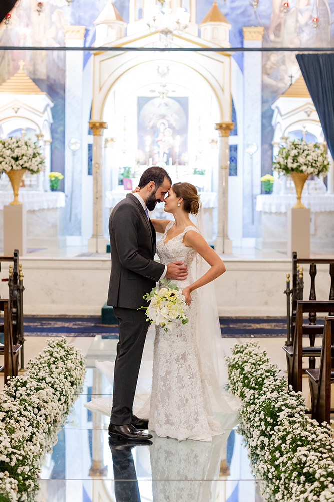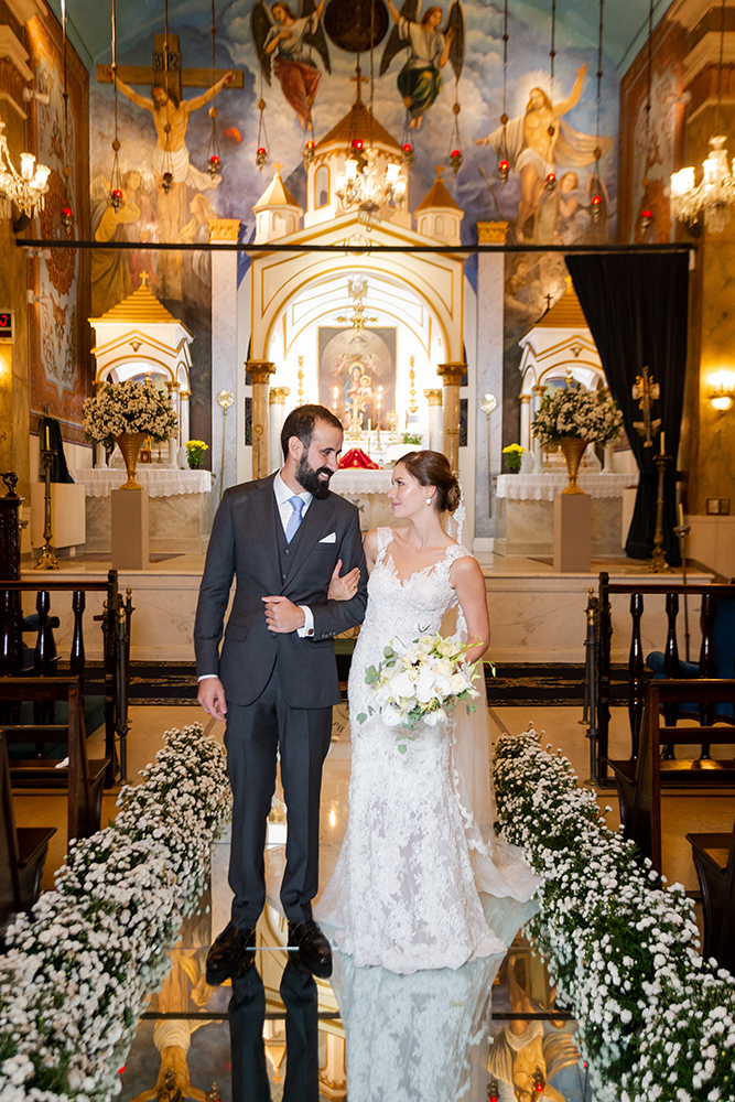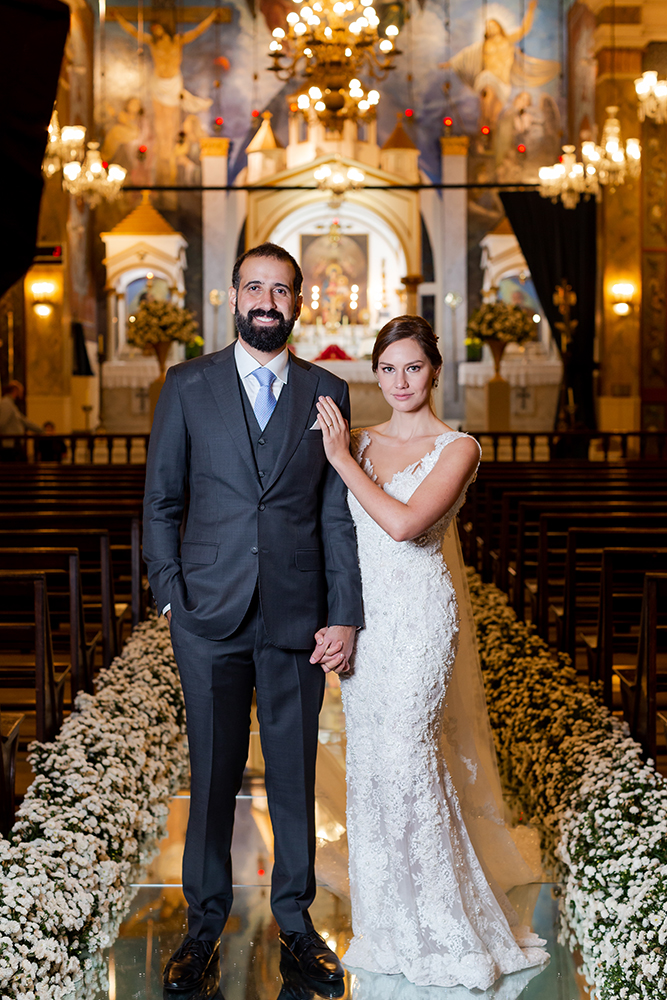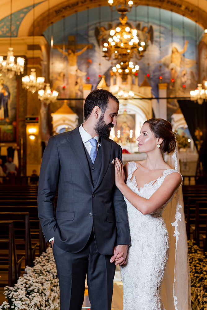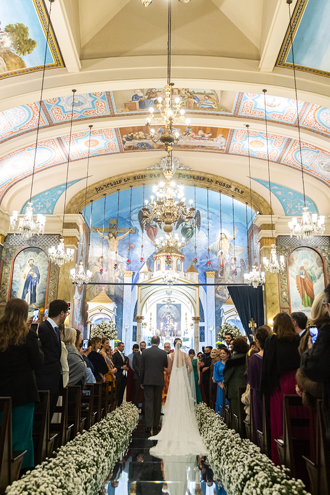 Aliás, minha principal preocupação era unir as tradições das famílias – o Felipe tem ascendência armênia e eu, portuguesa. Por isso, decidimos casar na Igreja Armênia de São Paulo, e foi uma emoção termos a missa celebrada pelo mesmo padre que casou os pais dele.