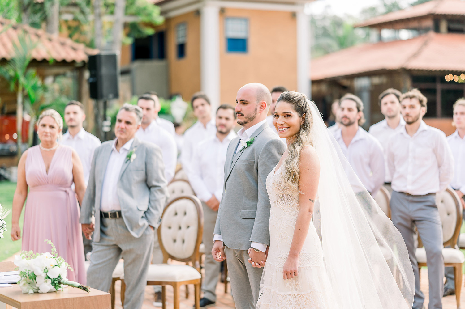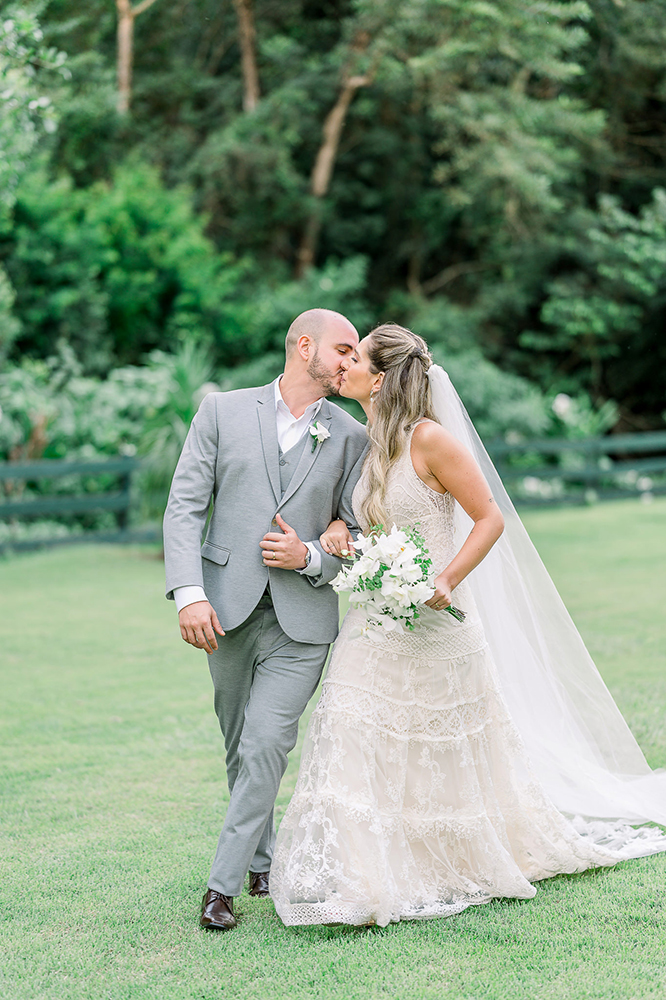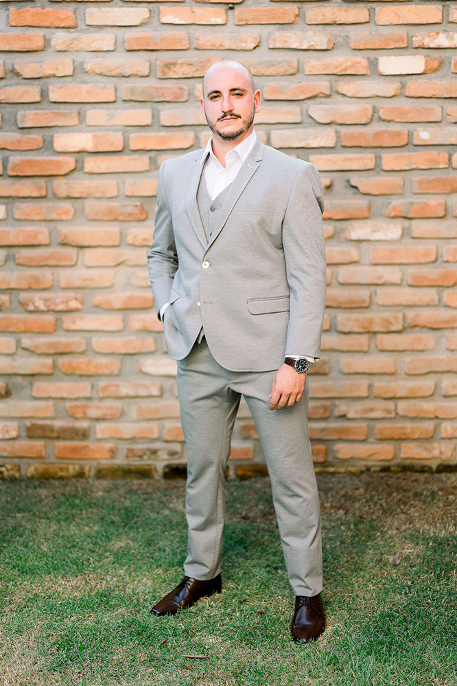 Lucas, por outro lado, abraçou um despojamento na medida para casar no campo. Um noivo bonito e atual, que abriu mão da gravata, mas adotou o colete.