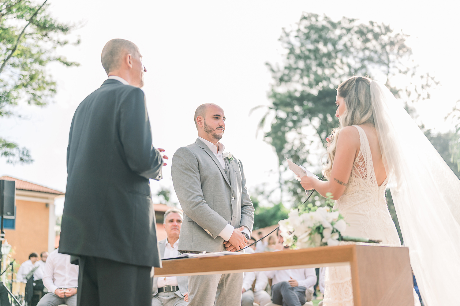 Casamento com cerimônia diurna é tudo de bom. Os noivos aproveitam o melhor de dois mundos, com celebração ao ar livre e festa noite adentro.