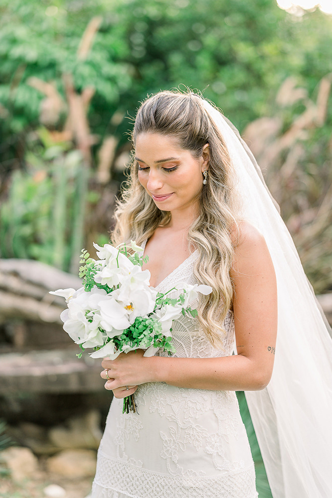 Com vestido em renda, penteado semi preso e buquê branco, Gabriela ficou fabulosa! Ela é naturalmente linda, tanto que já estampou um editorial especial sobre noivas e madrinhas (veja aqui).