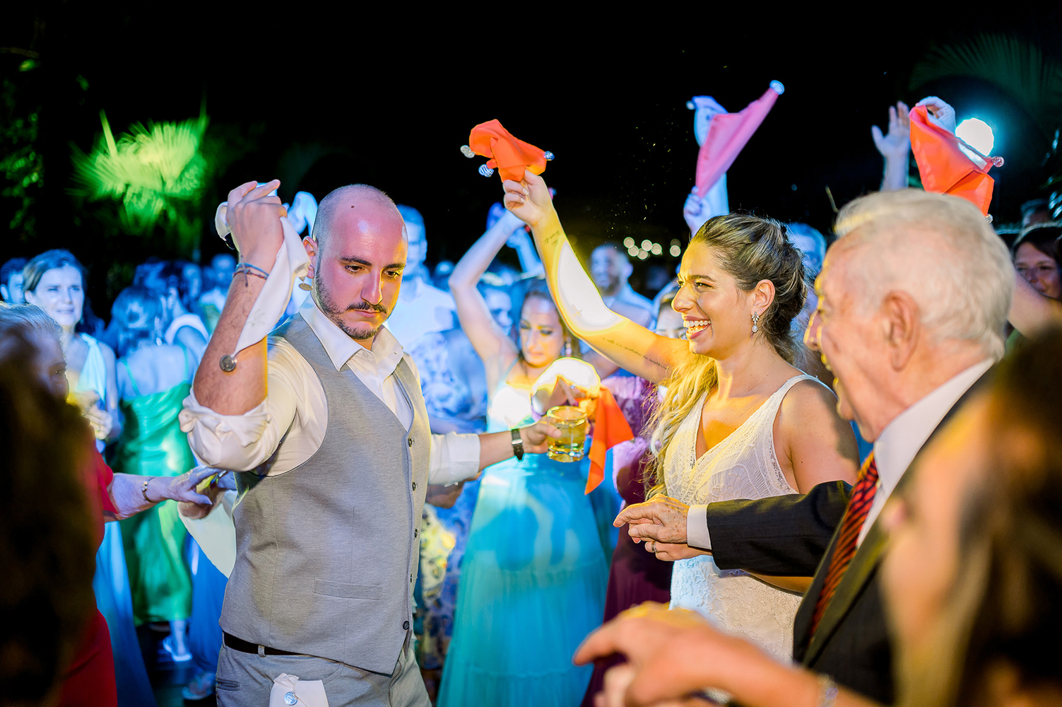 Aos noivos, Gabi e Lucas, nossos votos de uma vida leve, alegre e feliz, assim como a festa de casamento.