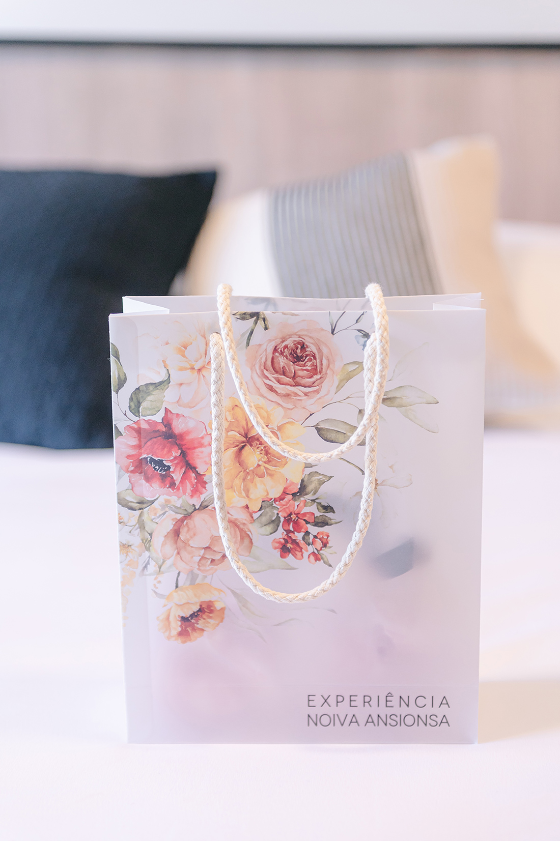 Além dos cardápios e marcadores de lugar, a Papel e Estilo preparou detalhes perfeitos: sacolinha com assinatura Experiência Noiva Ansiosa na Vila dos Eucaliptos, cartões de agradecimento e tags, sem contar o cartão com a lista completa de parceiros, tudo para que nossos convidados ficassem a par de todos os nomes.
