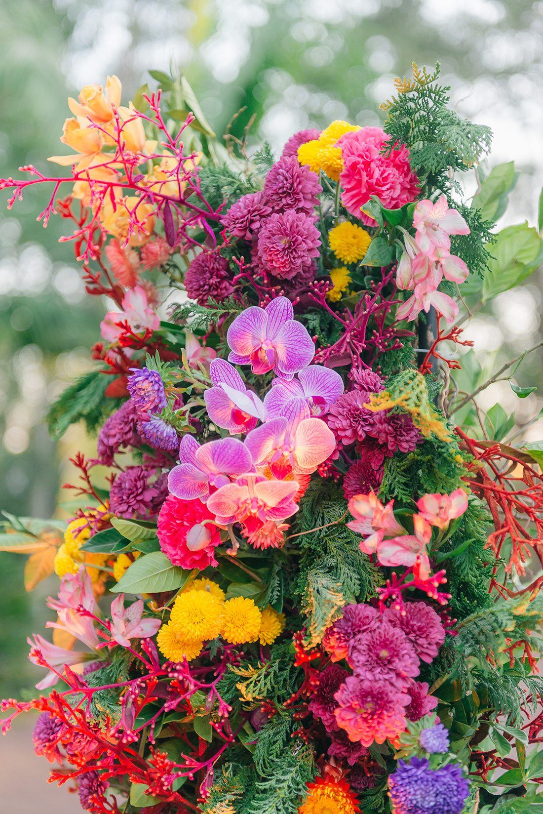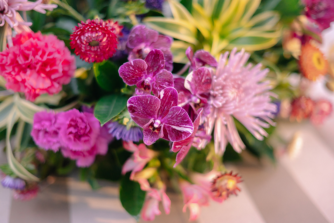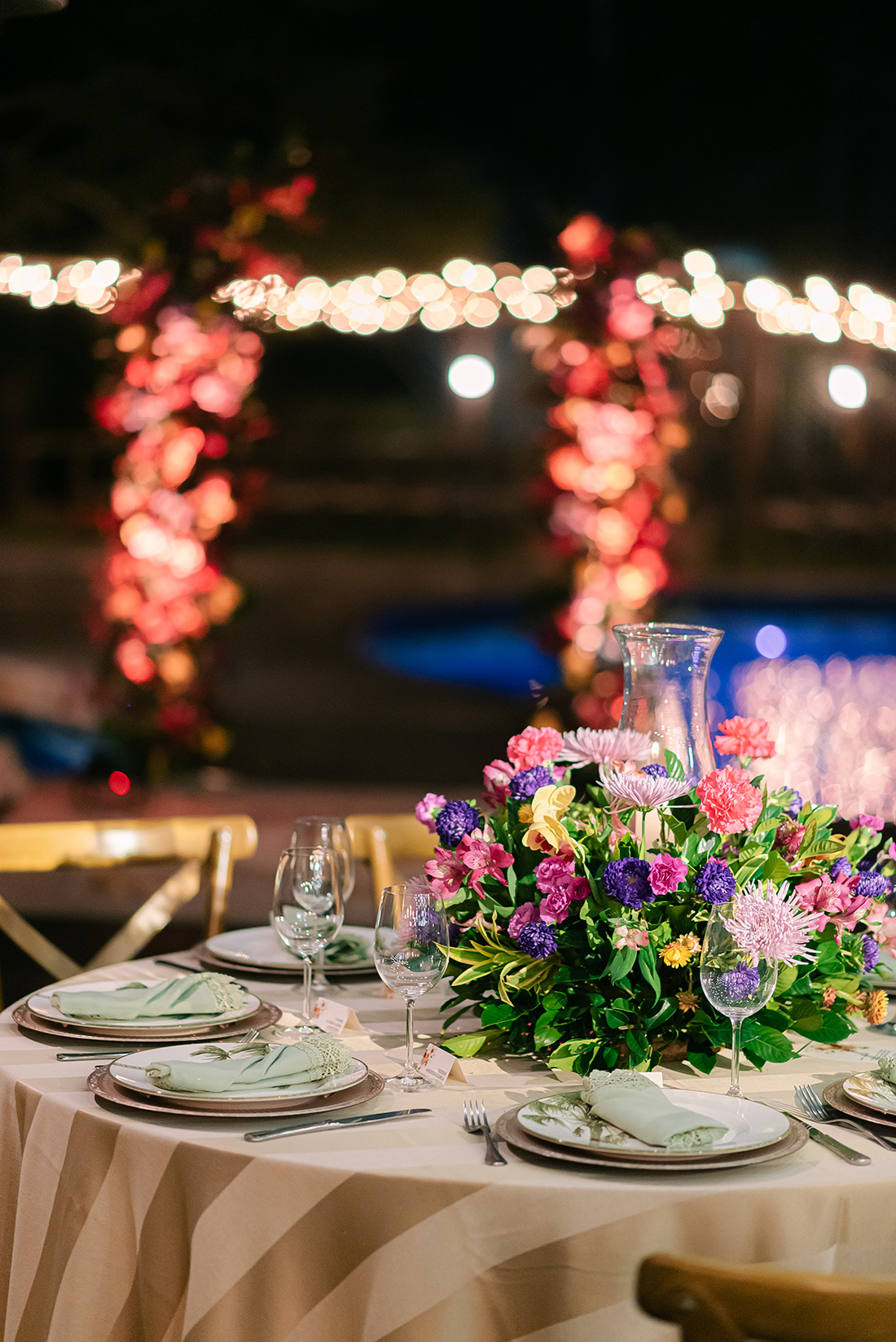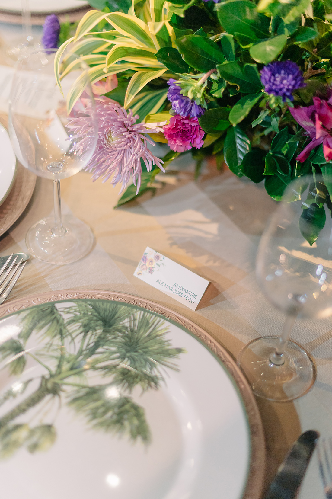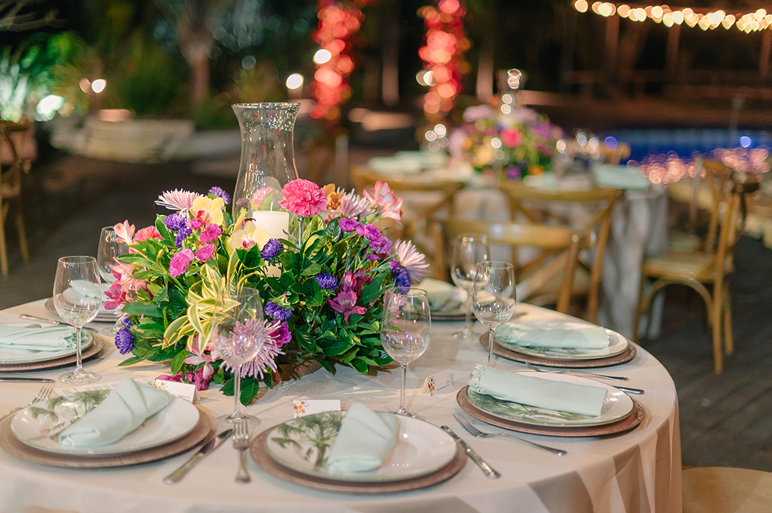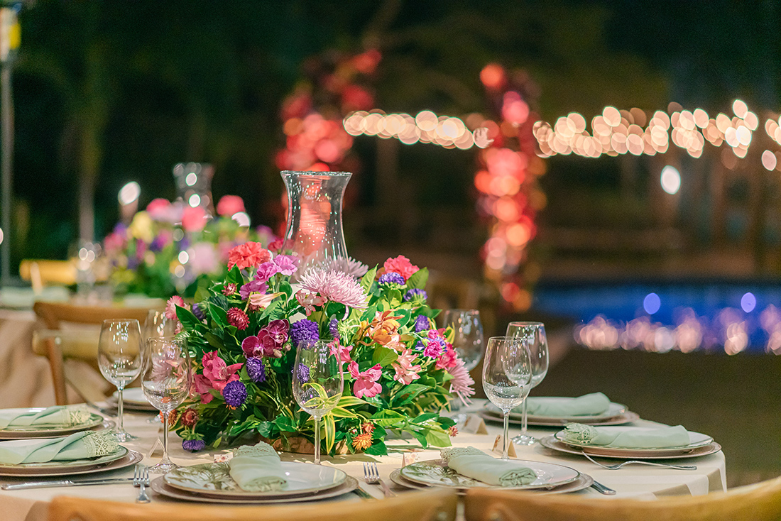 E também preciso destacar a decoração! Anderson Aguirela e equipe arrasaram nos detalhes, preparando um ponto para fotos com carinha de altar, além de arranjos e detalhes para as mesas. Ficou impecável, especialmente pela paleta colorida e mescla de flores.